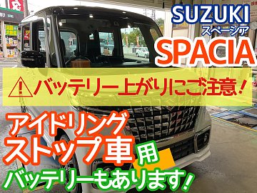 【SUZUKI スペーシア】アイドリングストップ用バッテリー交換です!突然のバッテリー上がりにご注意を!!