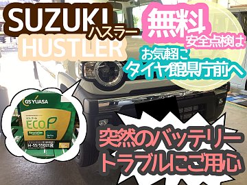 【SUZUKI HUSTLER】バッテリートラブルは突然に…安全点検はタイヤ館県庁前へ