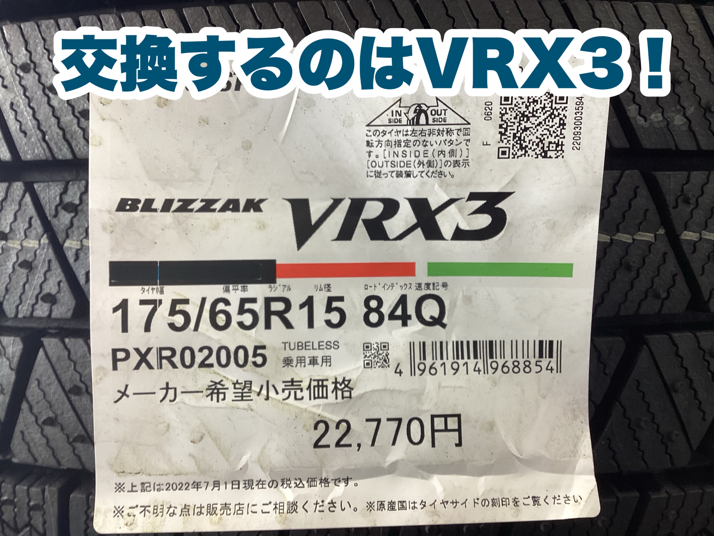 交換したのは、ブリザック最高性能のVRX3!!