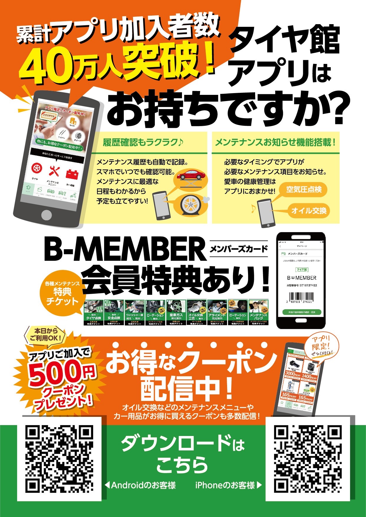 タイヤ館アプリ登録でさらにお得に交換できます♪
