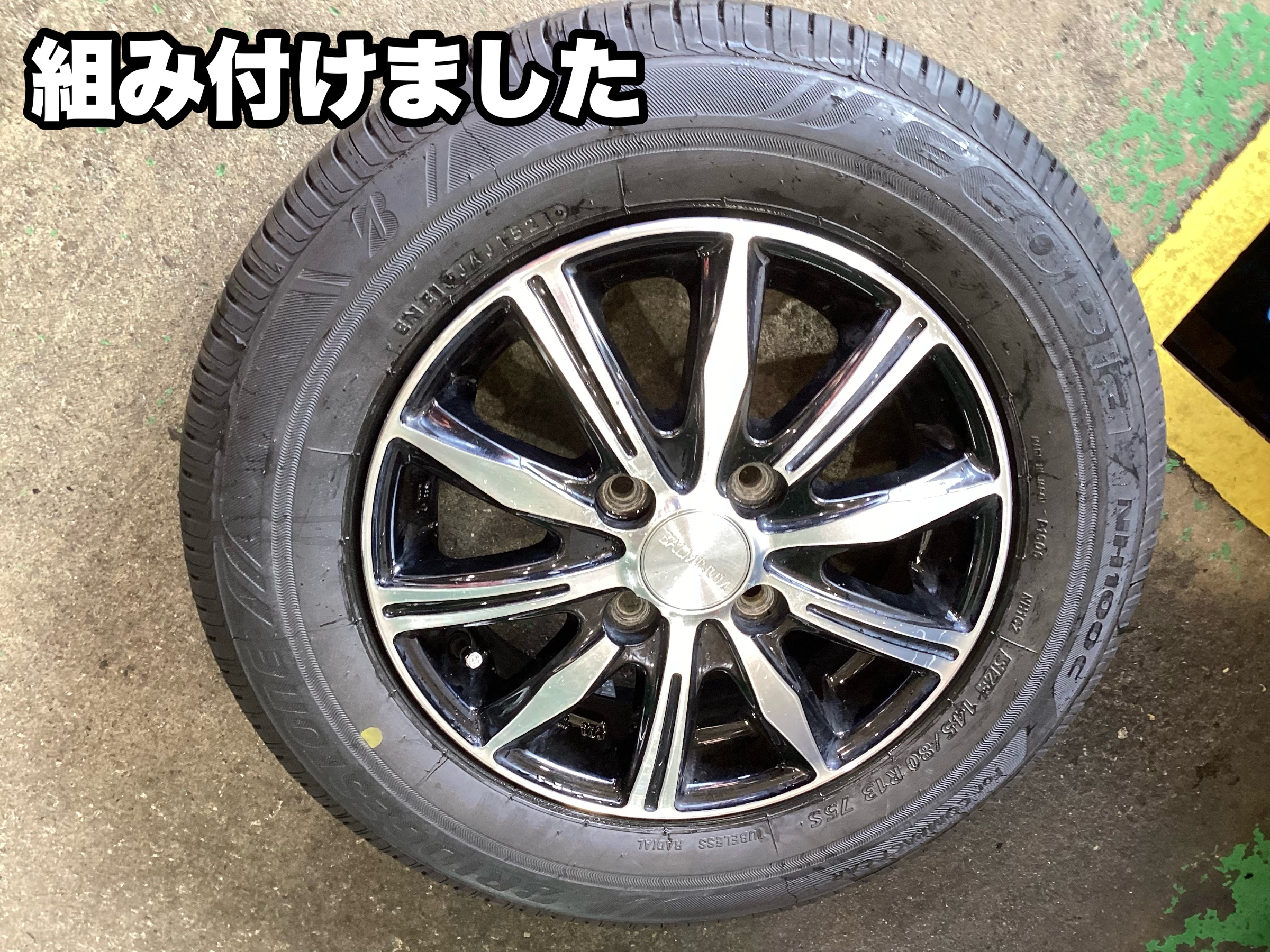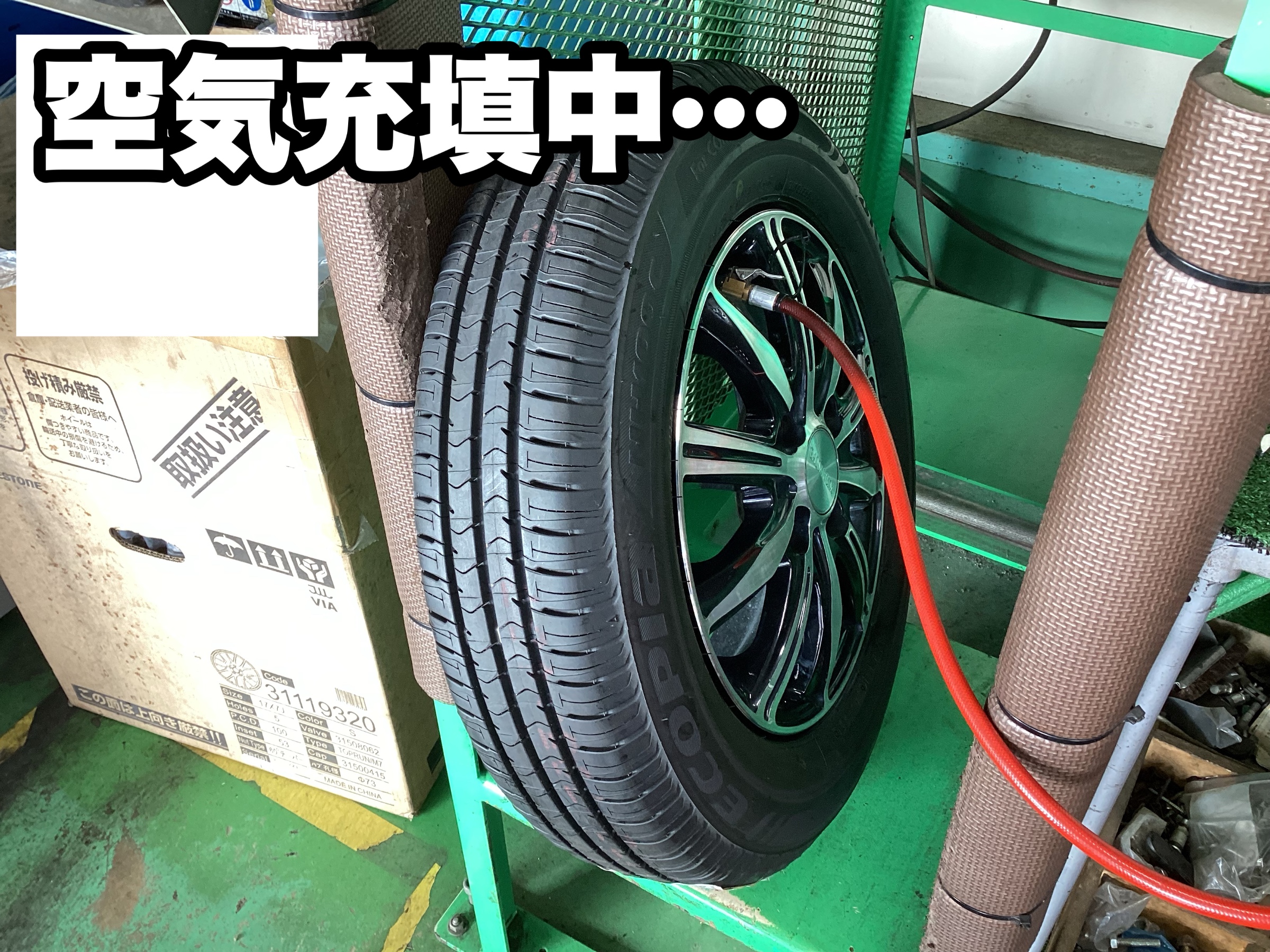 新品タイヤを組み付けします。