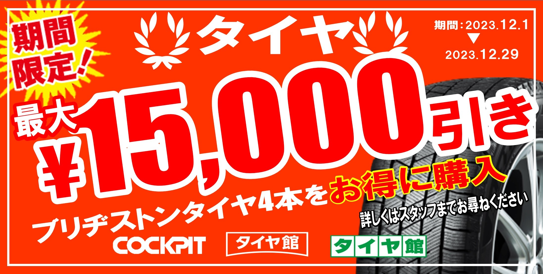 ただいま、ブリヂストンタイヤを4本ご購入で