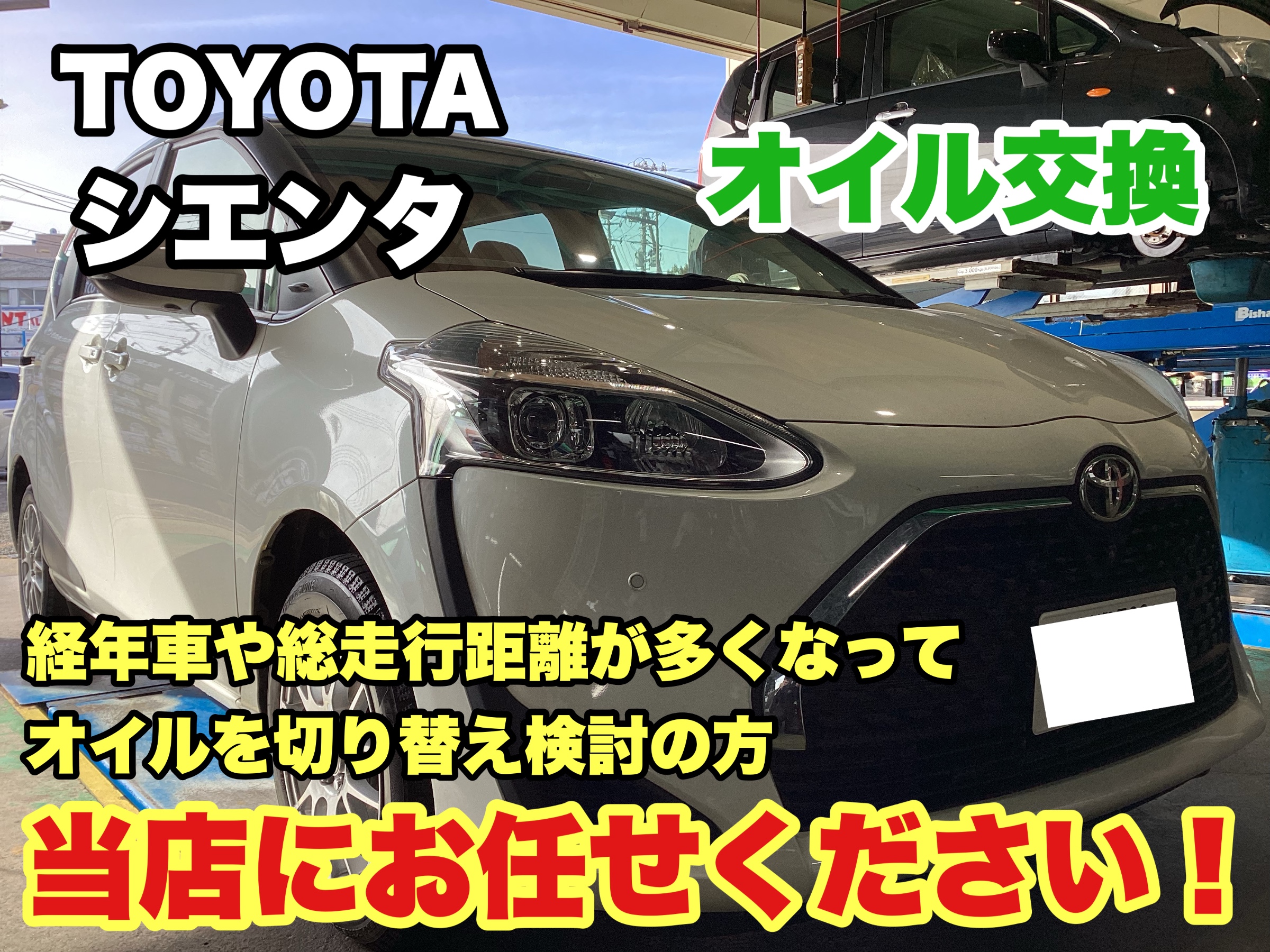 【オイル交換】総走行距離が多い車や経年車になってきてエンジンオイルを切り替えをお考えなら当店へ!《TOYOTA シエンタ》