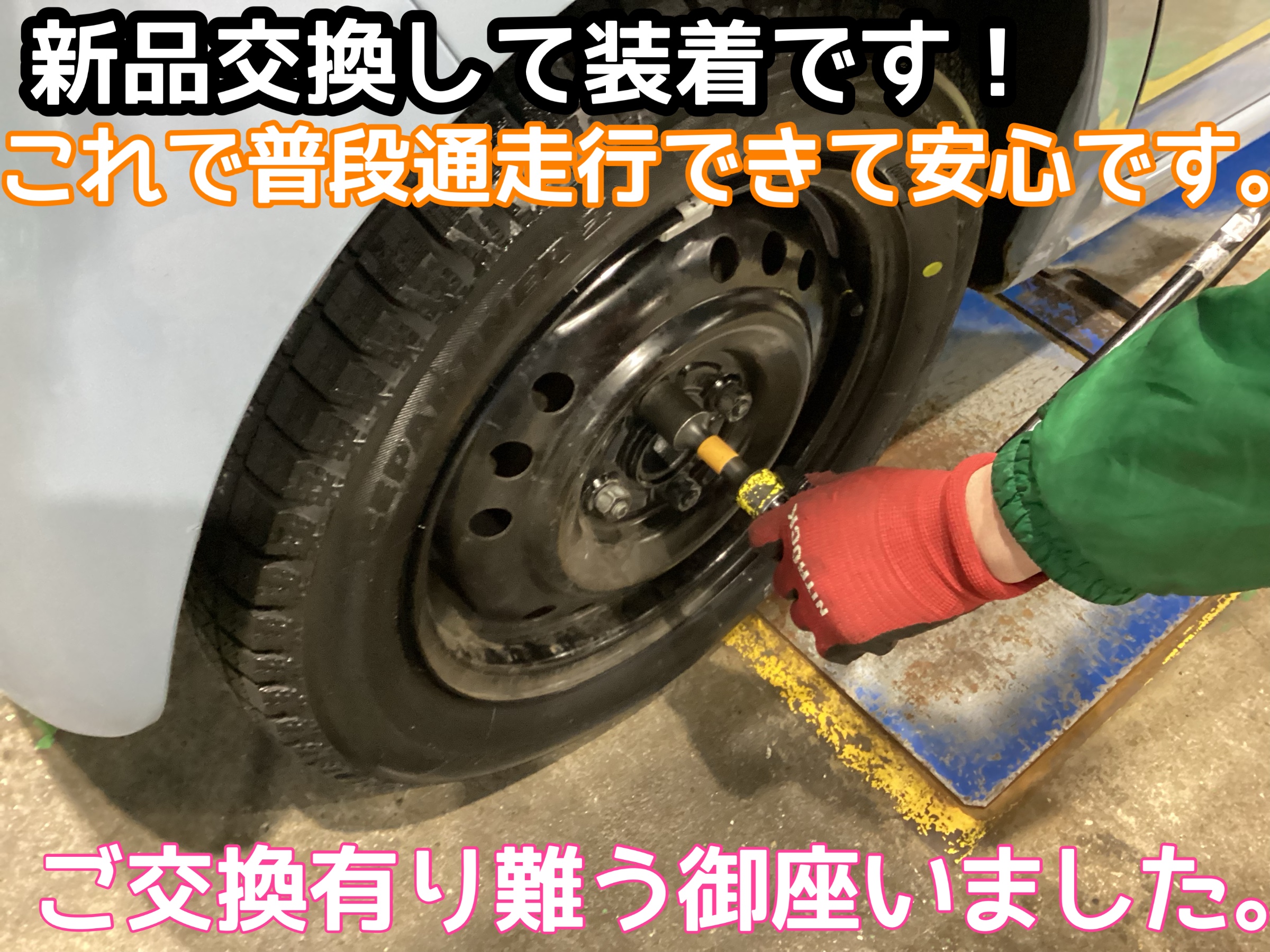 新品タイヤを取り付けし作業完成です!
