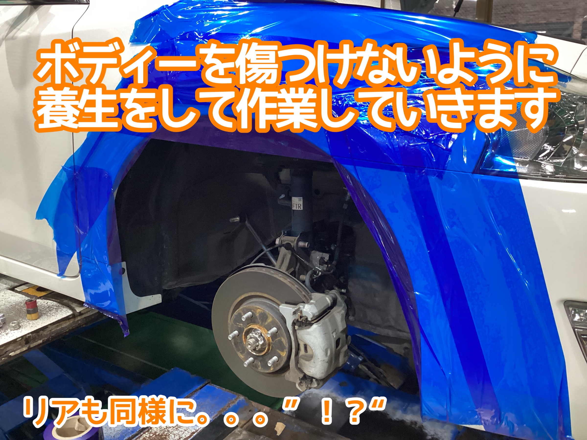 ボディを傷つけないように保護テープで養生します。