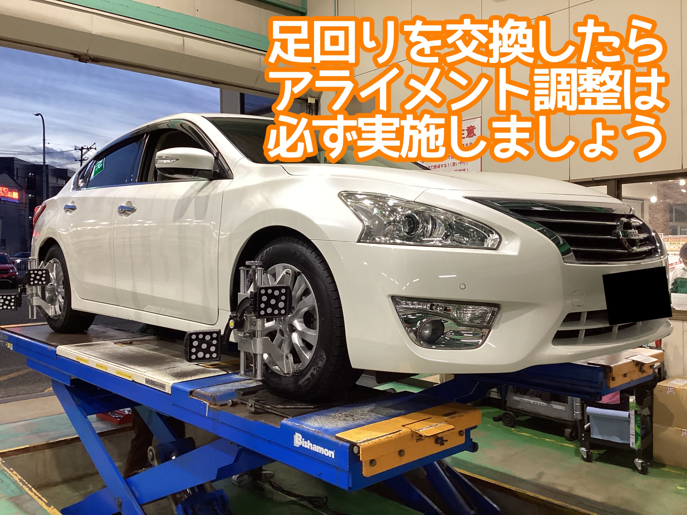 そして、足回りを交換したら、アライメント調整です。