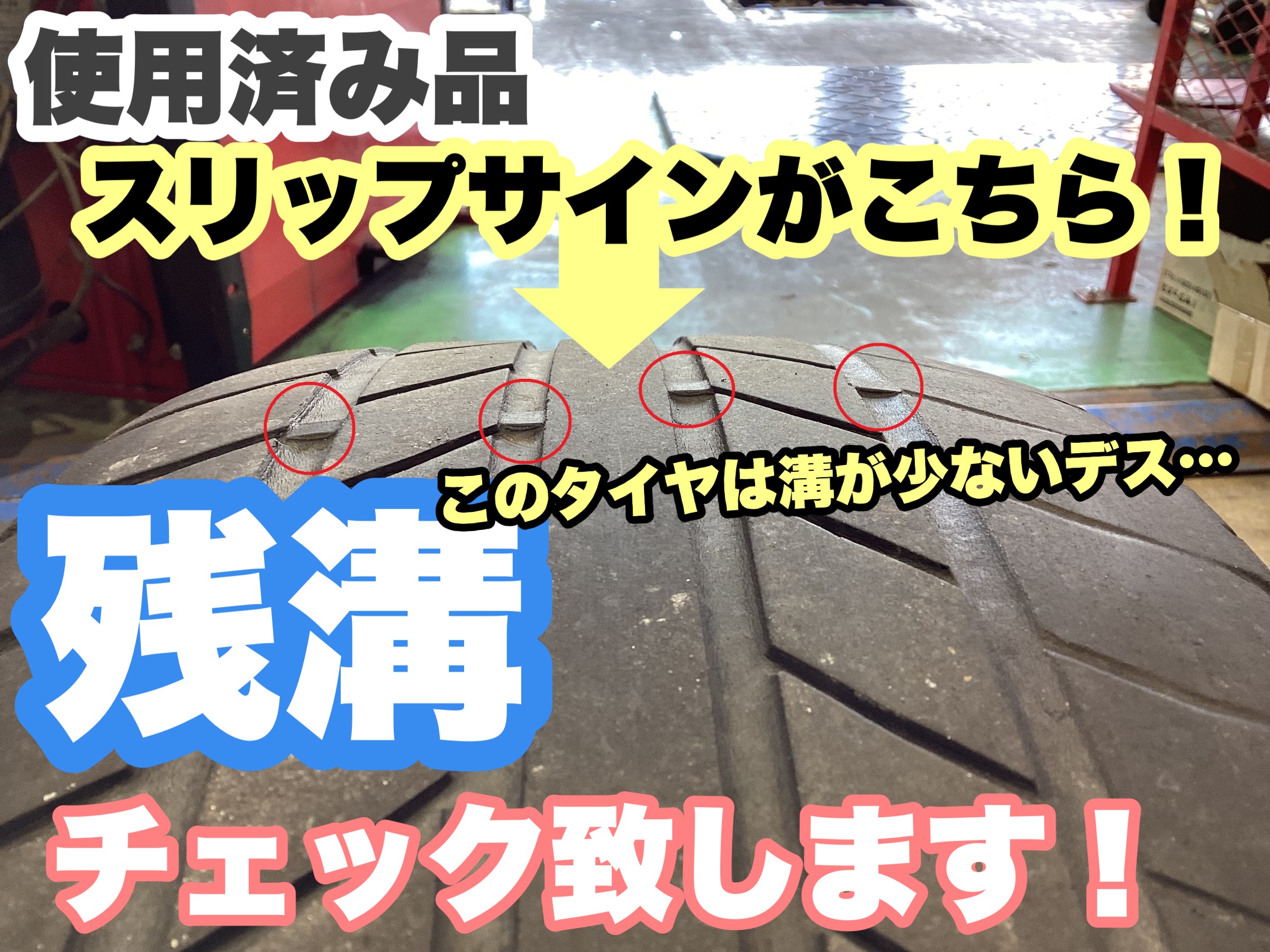 ちなみに、新品タイヤの場合は、スリップサインまで