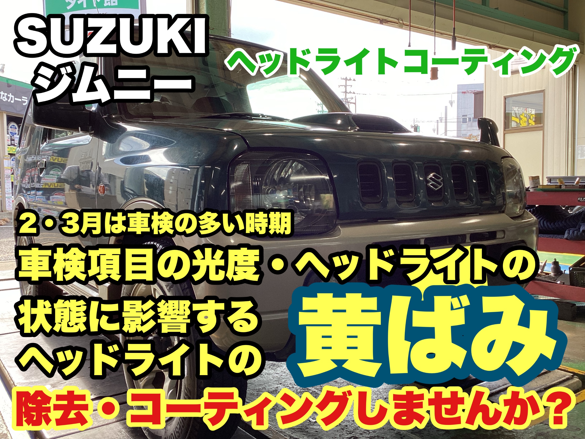 【ヘッドライトコーティング】2・3月は車検の多い時期です。ヘッドライトの光度や状態に影響する黄ばみを除去しませんか?《SUZUKI ジムニー》ヘッドライトコーティングしました☆