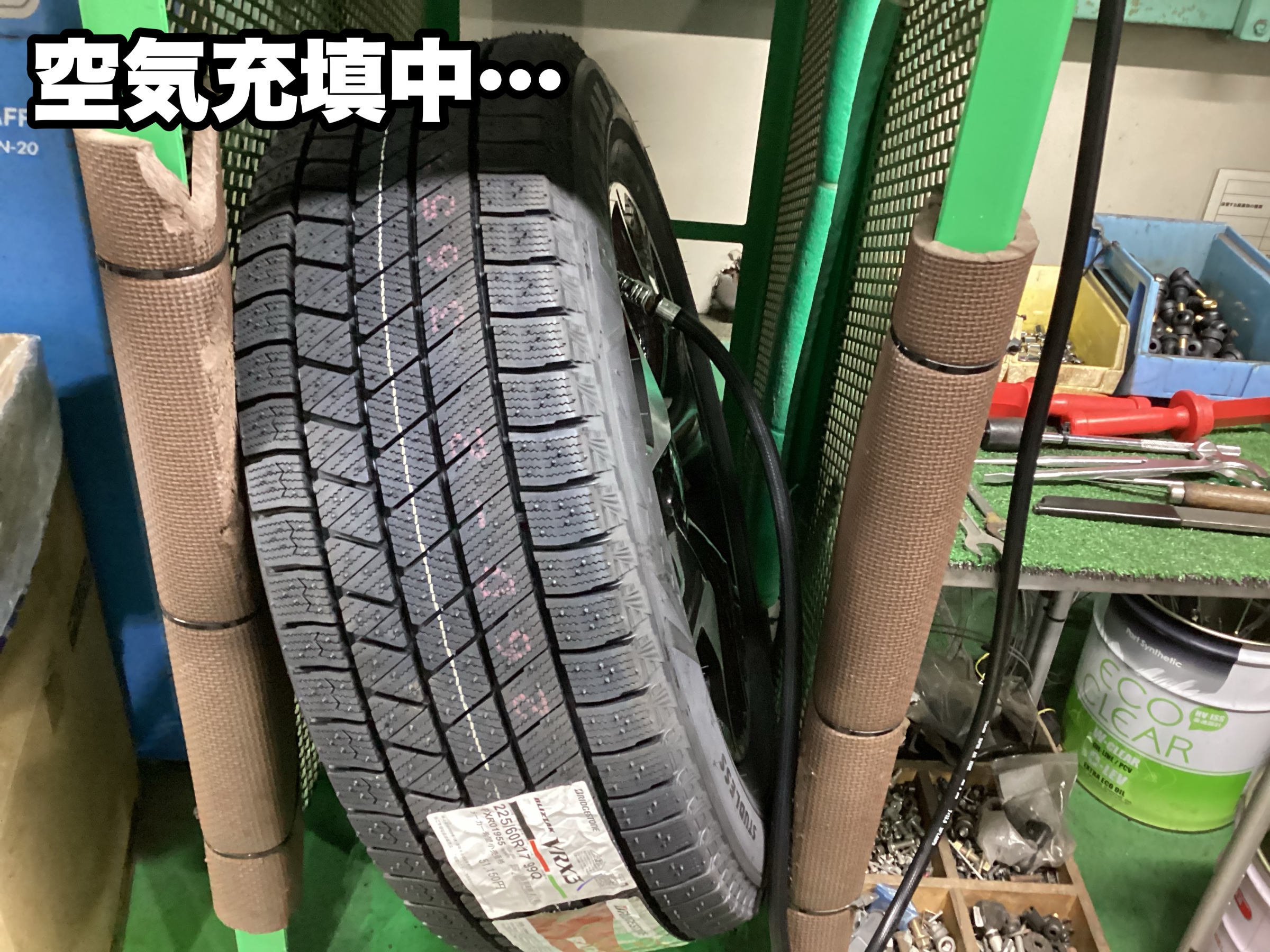 空気充填中後、エア漏れチェックをしてから