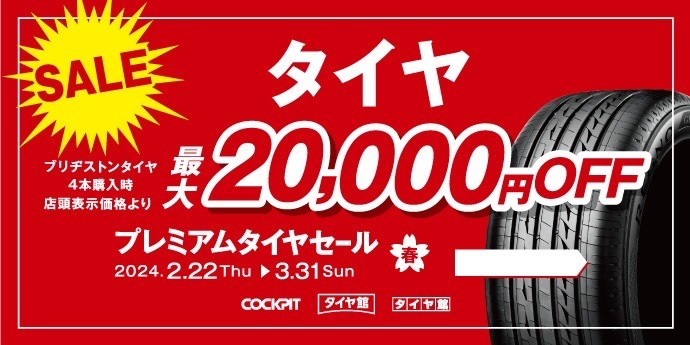 タイヤが最大¥20,000引きとなるクーポンをご用意!