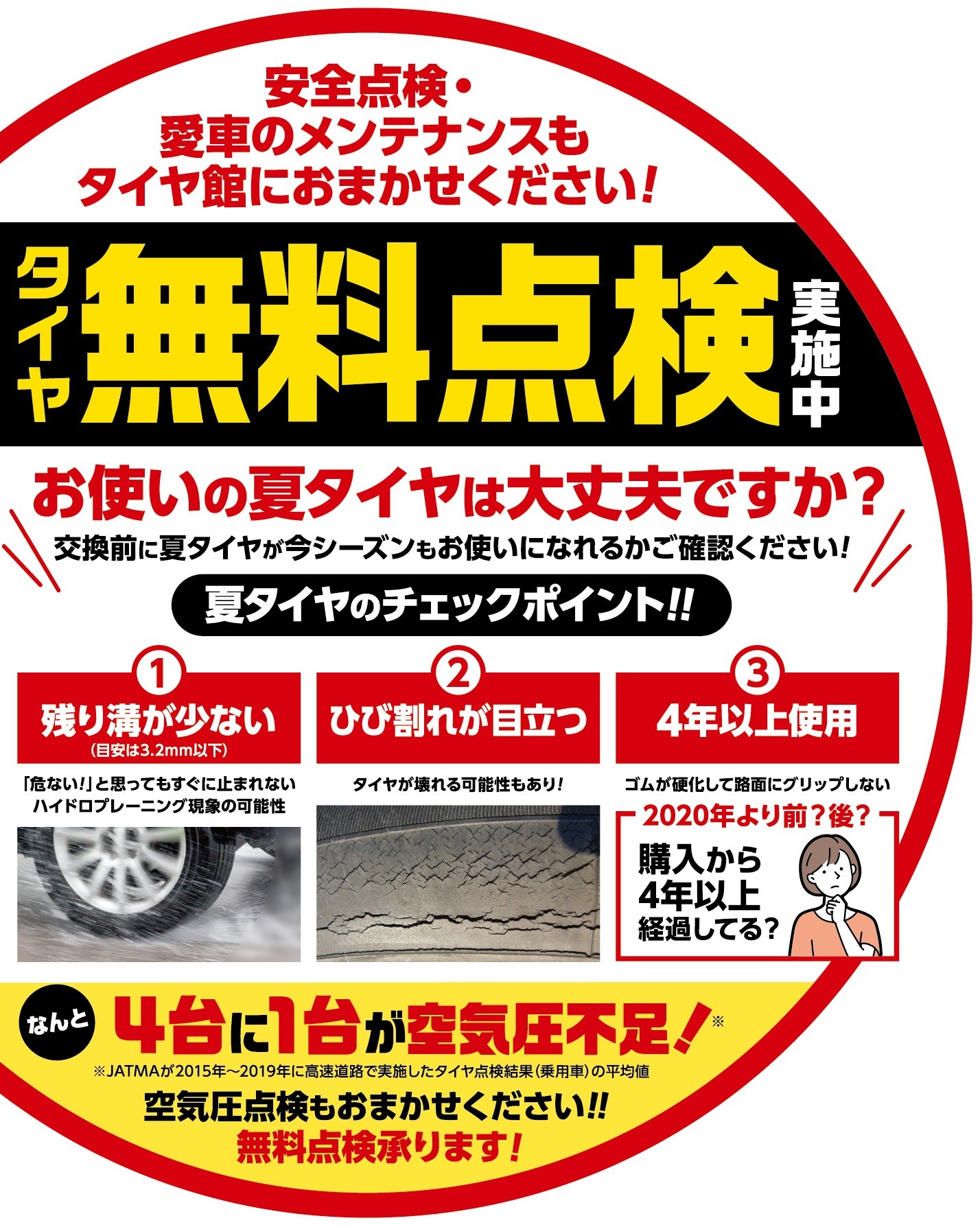 お持ちの夏タイヤを1本でもご持参いただければ、
