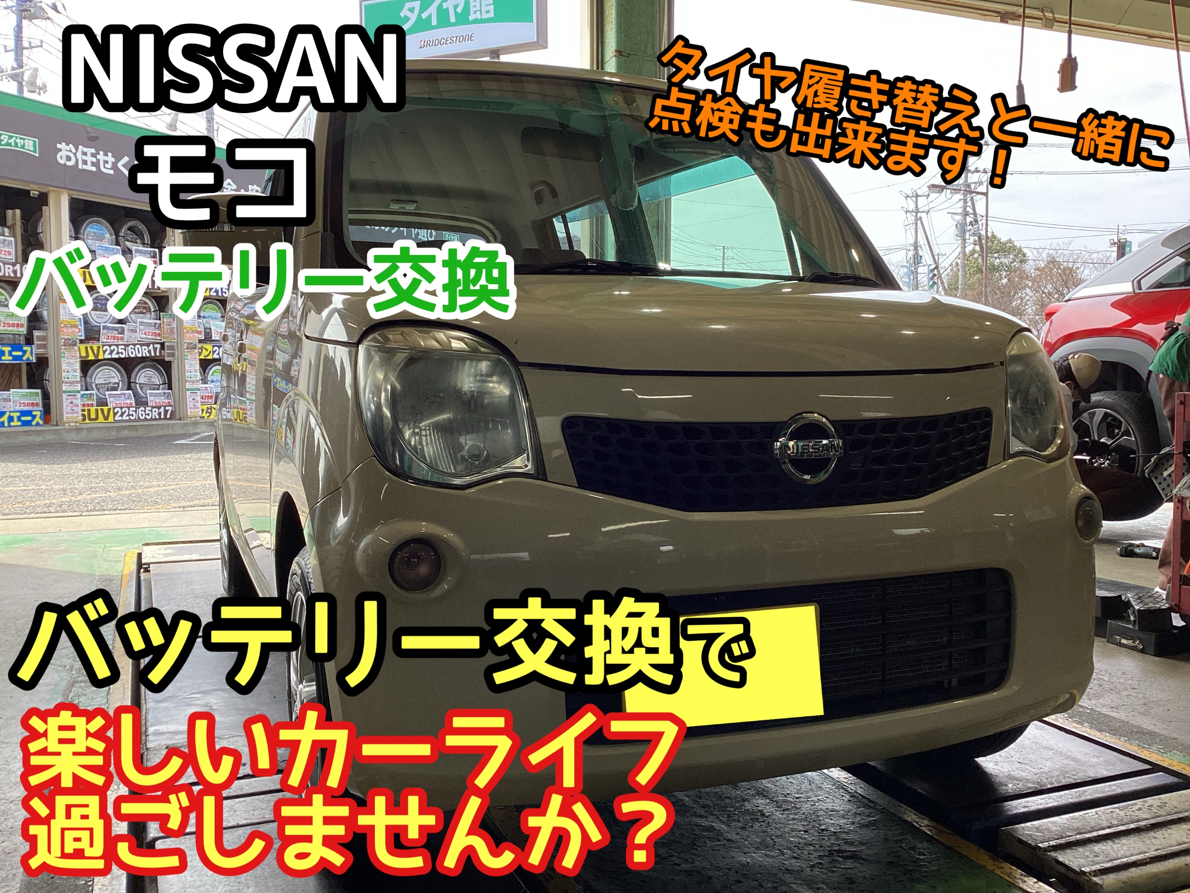 【バッテリー交換】タイヤ交換と一緒にバッテリー点検しませんか?交換も一緒に出来ます!《NISSAN モコ》