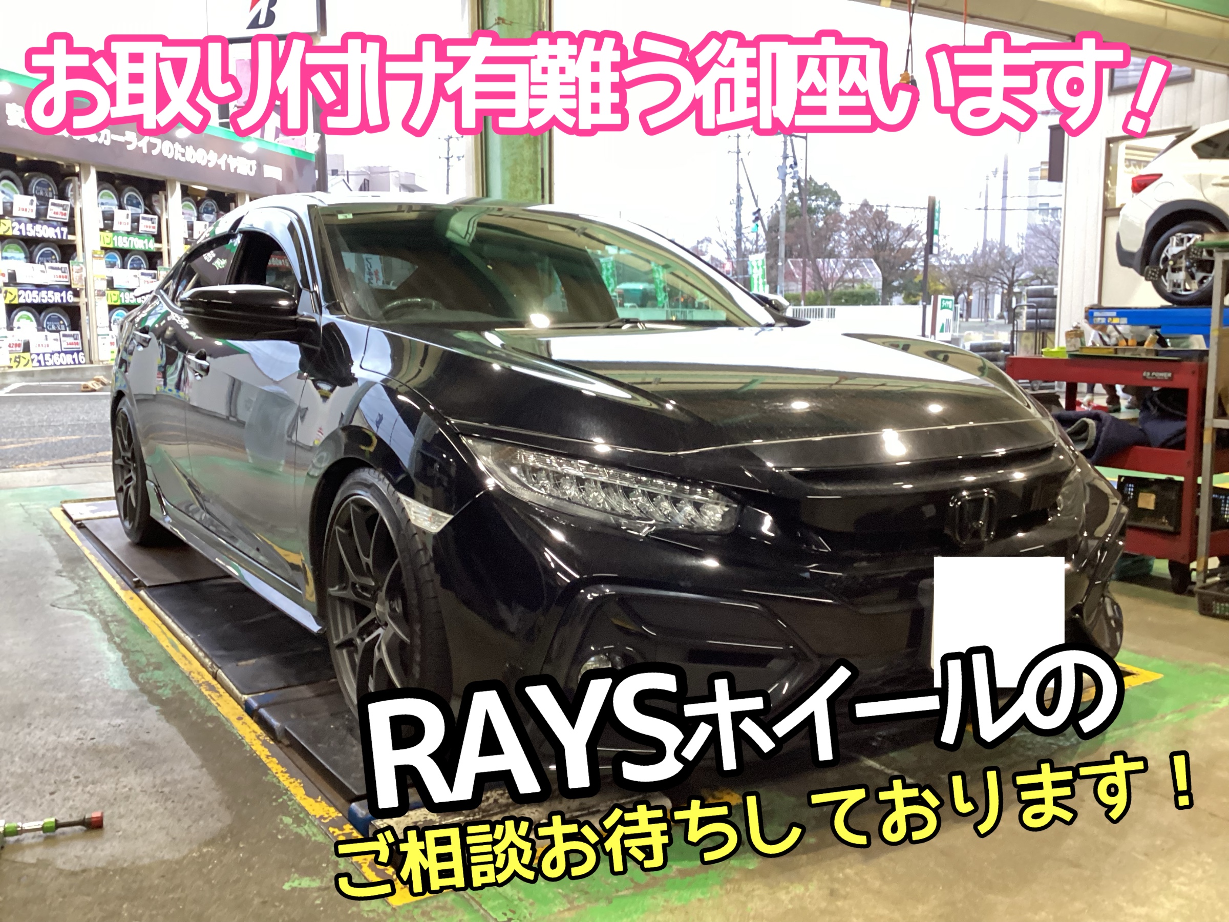 【HONDA シビック】RAYS アルミホイール取付しました!最高峰のアルミホイールをお車の足下にどうぞ♪