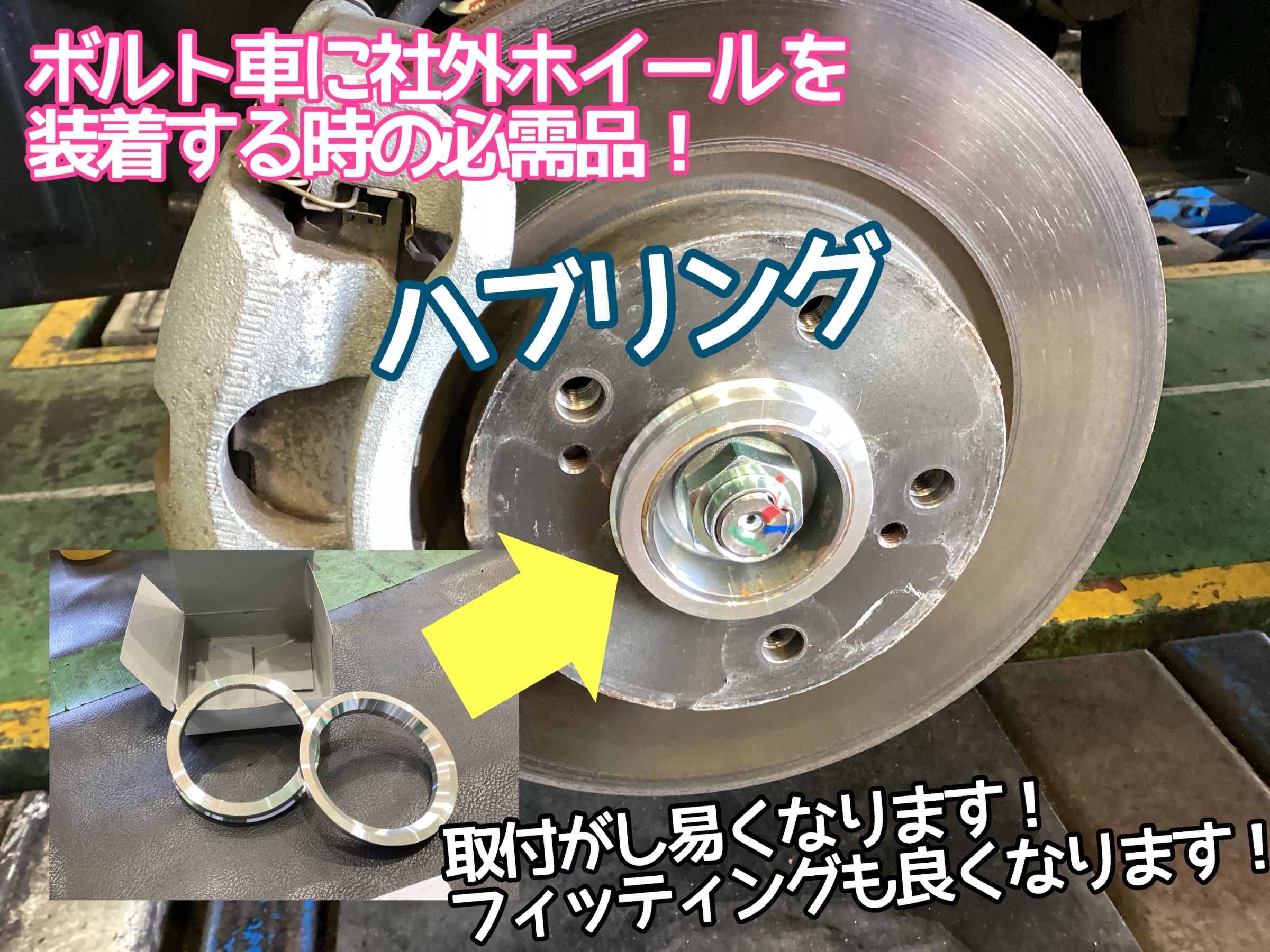 ホイール側のハブと車両側のハブの隙間を埋めて