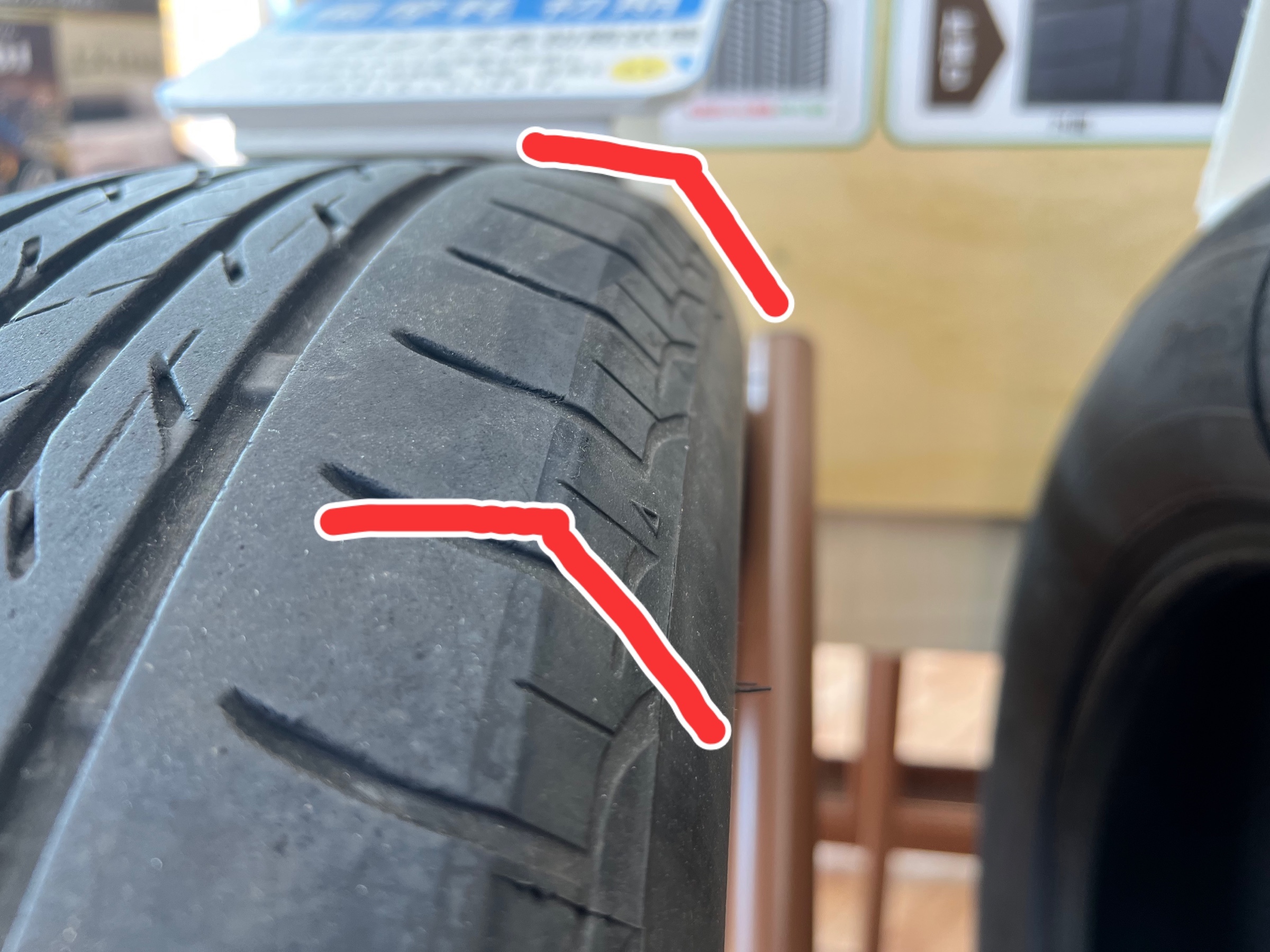タイヤにこのような傷があれば要注意!