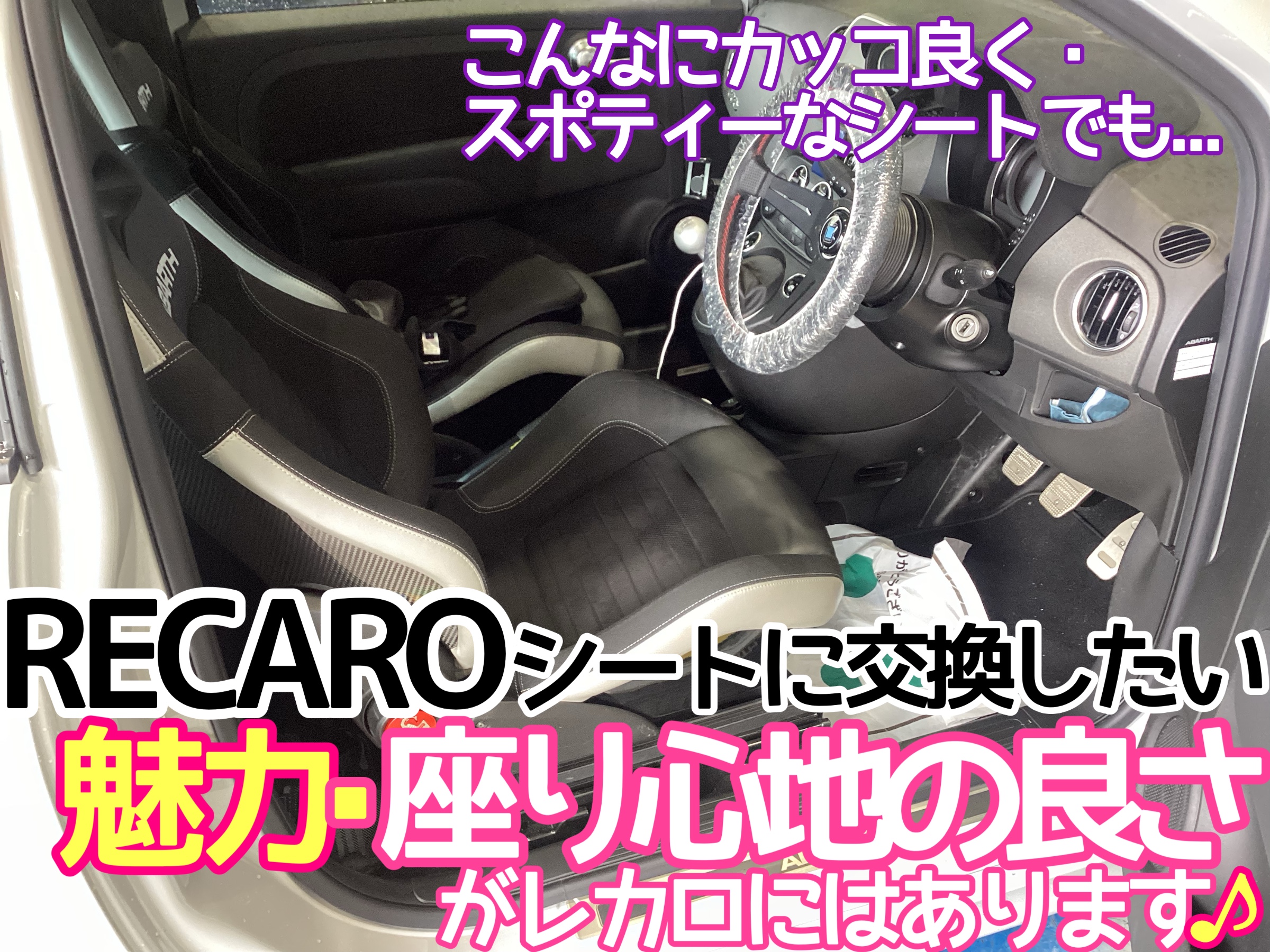 【アバルト595】レカロシート《RS-G CL》装着しました!アバルトのシート交換事例増えております♪