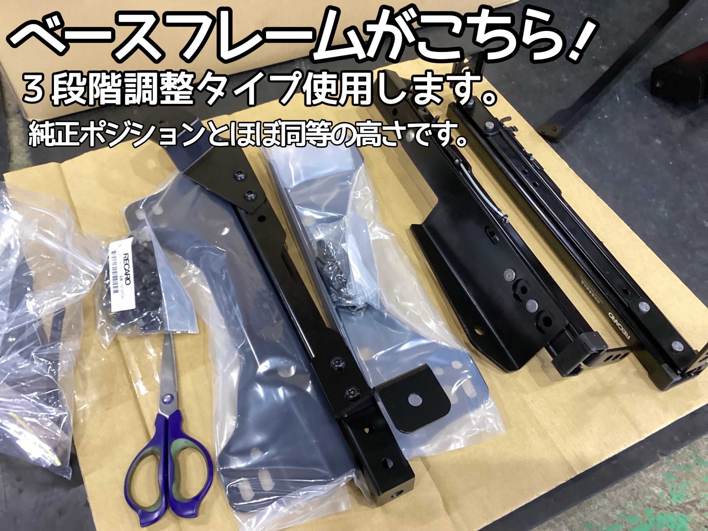 今回は3段階調整タイプのベースフレームなので