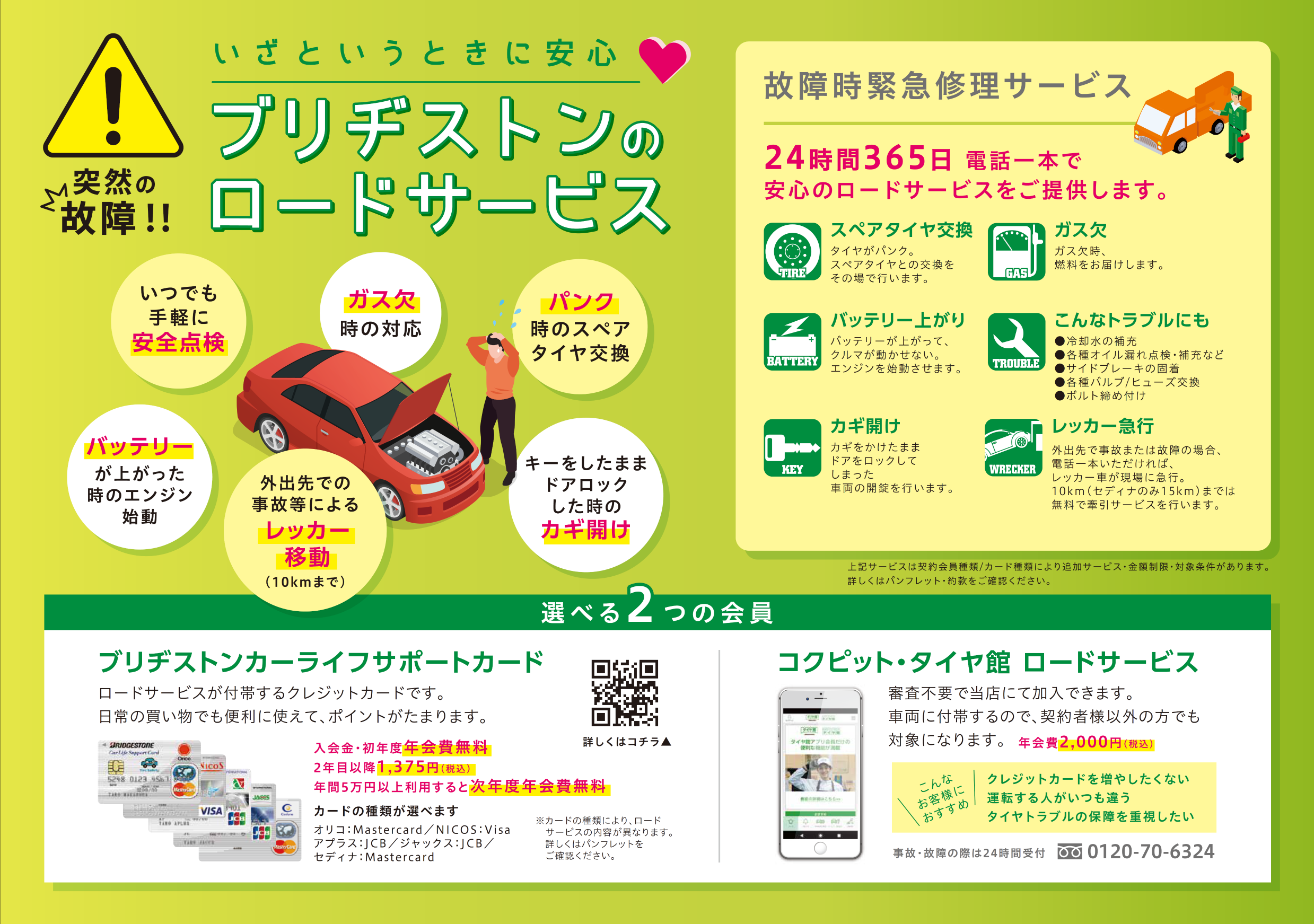 当店でタイヤを4本ご購入いただいた際に加入できる
