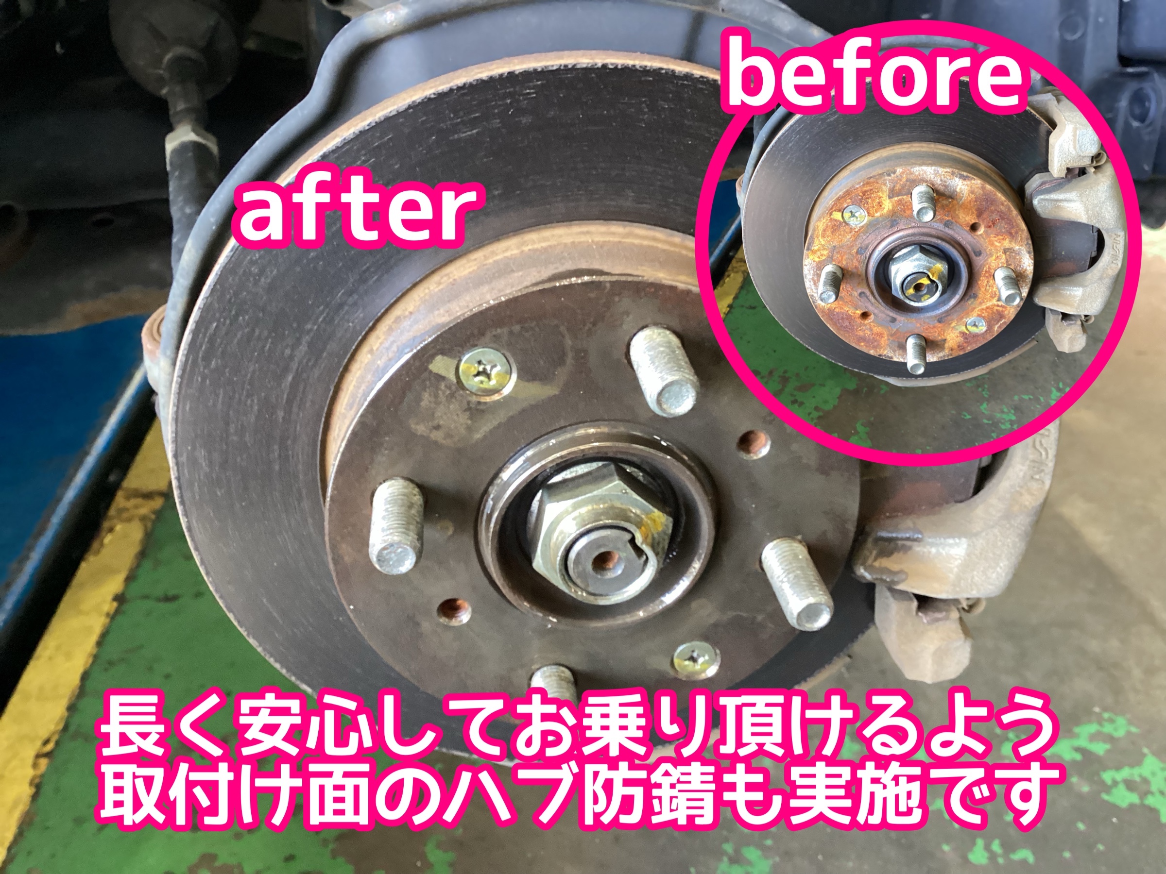 ホイールを取り付けるハブ面の防錆処理を実施。