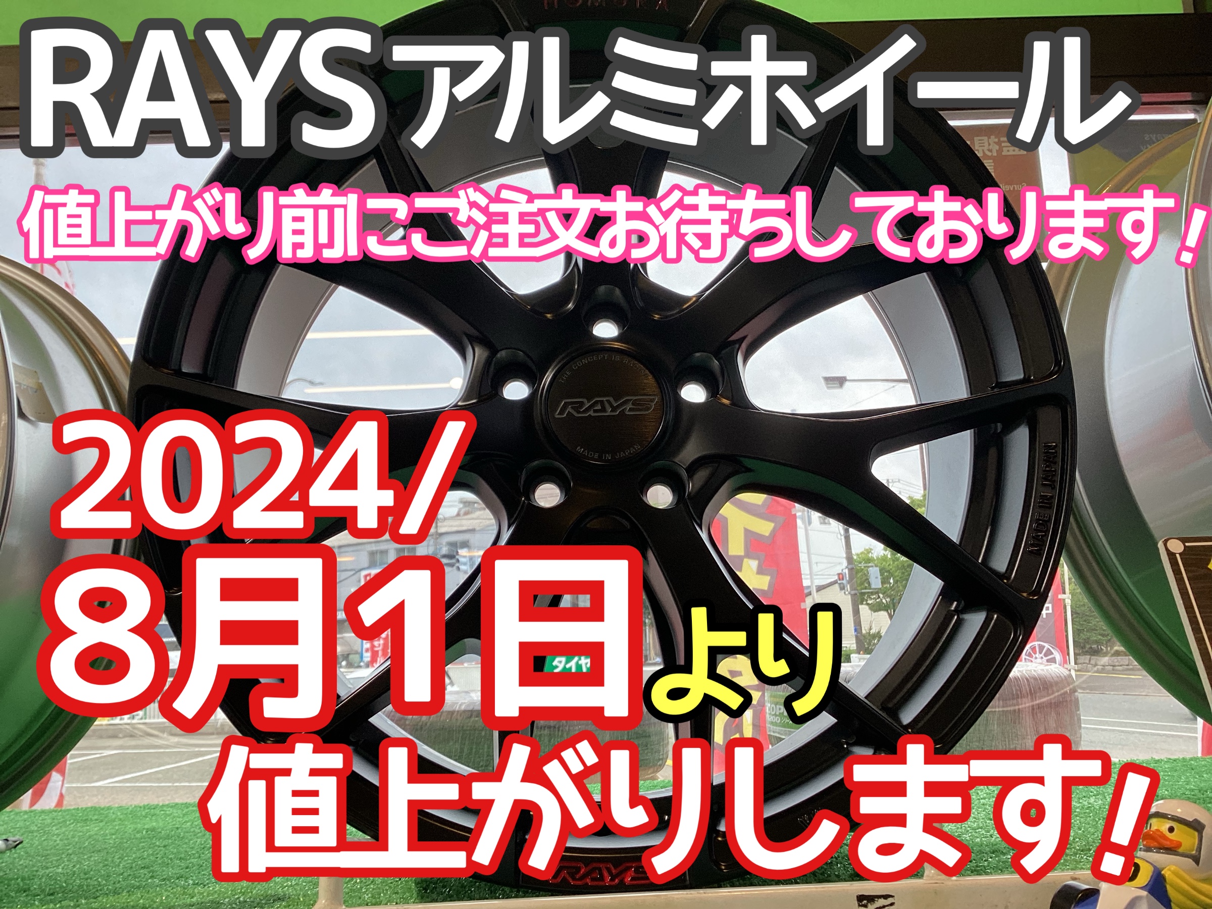RAYS(レイズ)のホイールが値上りします(・・;)2024年8月1日ご注文より価格が変わります。皆さん急げぇ(● ˃̶͈̀ロ˂̶͈́)੭ꠥ⁾⁾