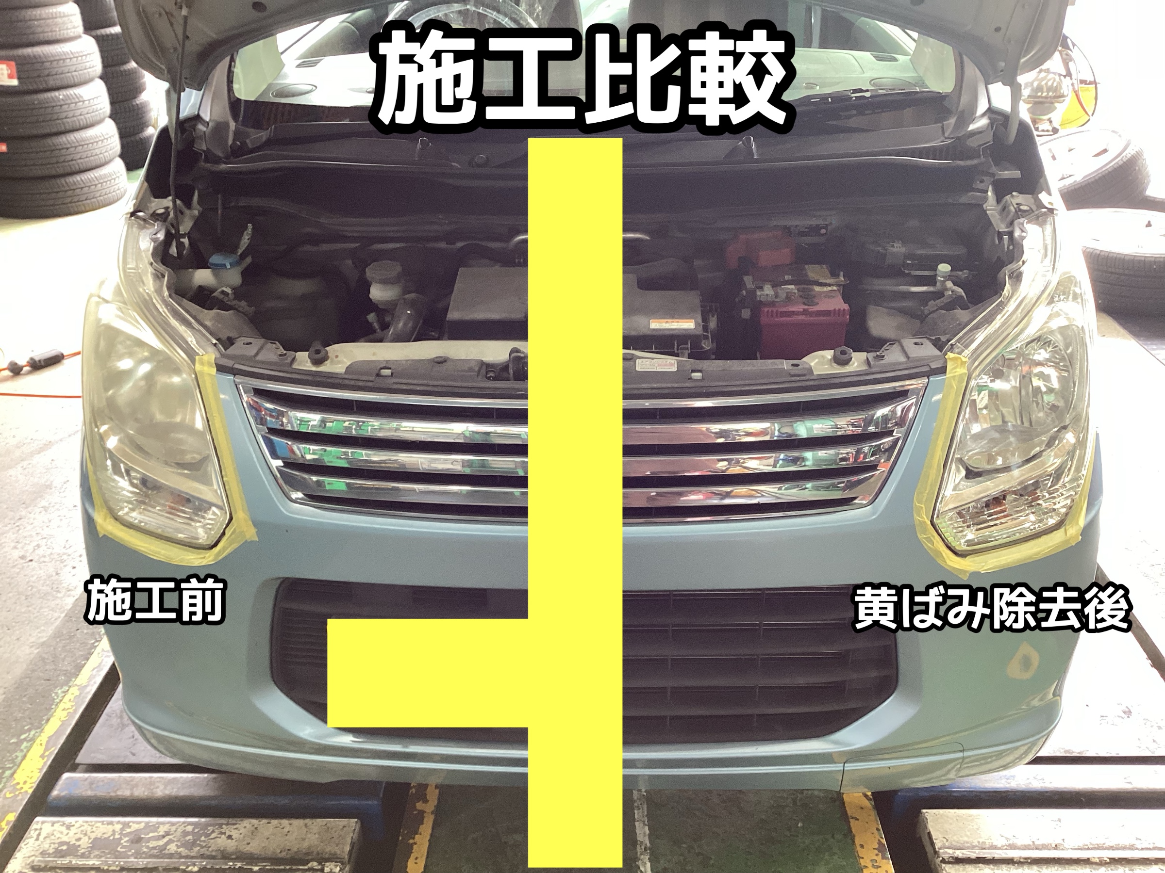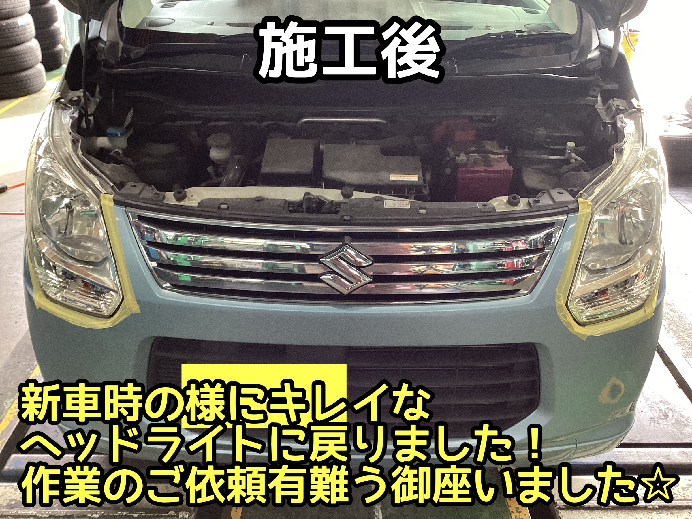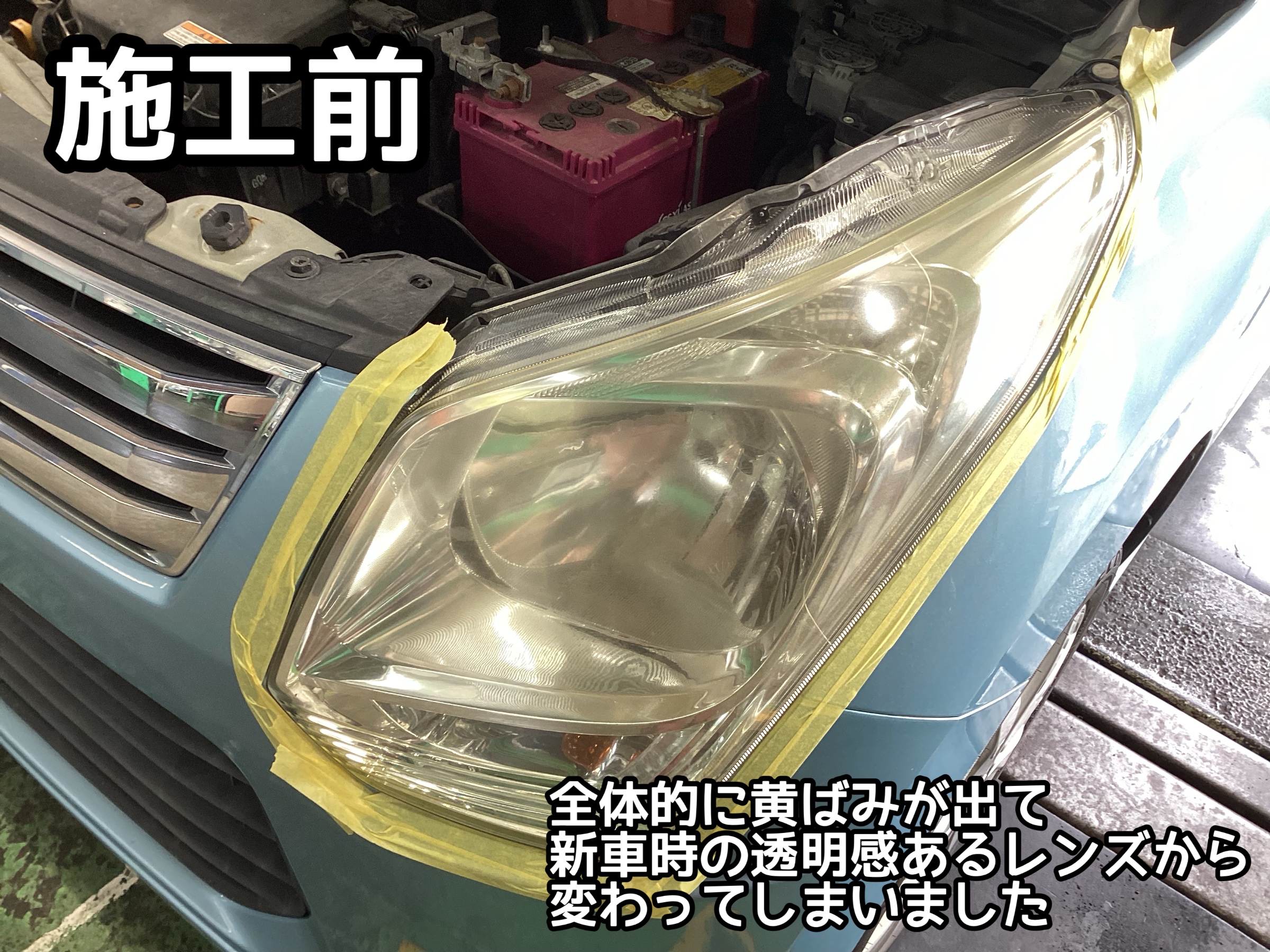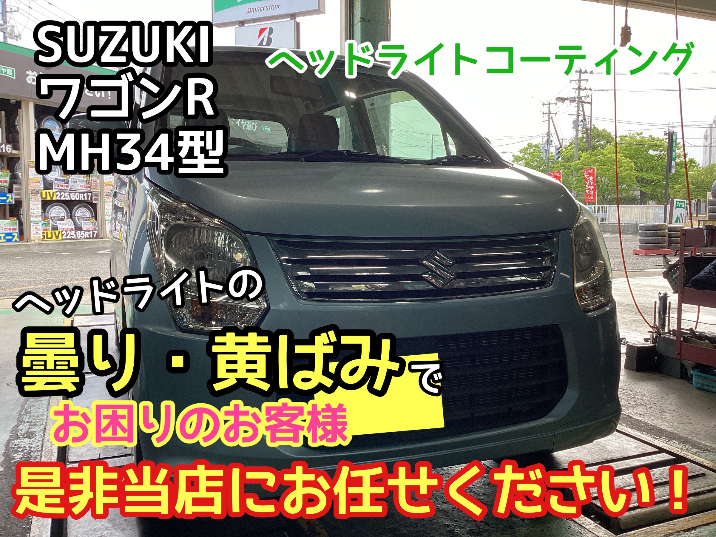 【ヘッドライトコーティング】ヘッドライト表面の曇りや黄ばみでお悩みのお客様! タイヤ館でもヘッドライトの曇り・黄ばみ除去とコーティングできます☆《SUZUKI ワゴンR》MH34型