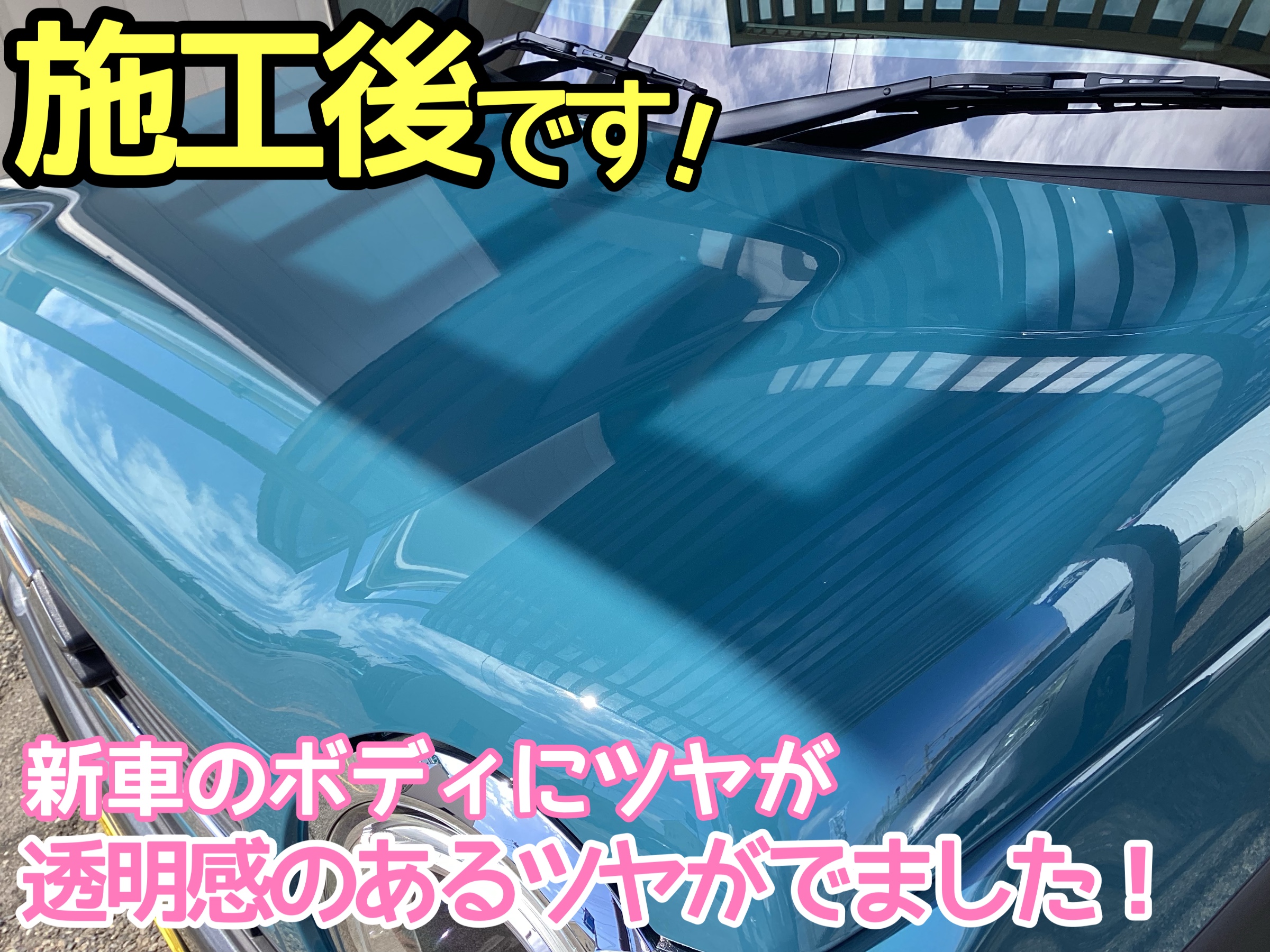 色の濃いお車(赤・青・緑)に施工すると違いがわかり易いです!