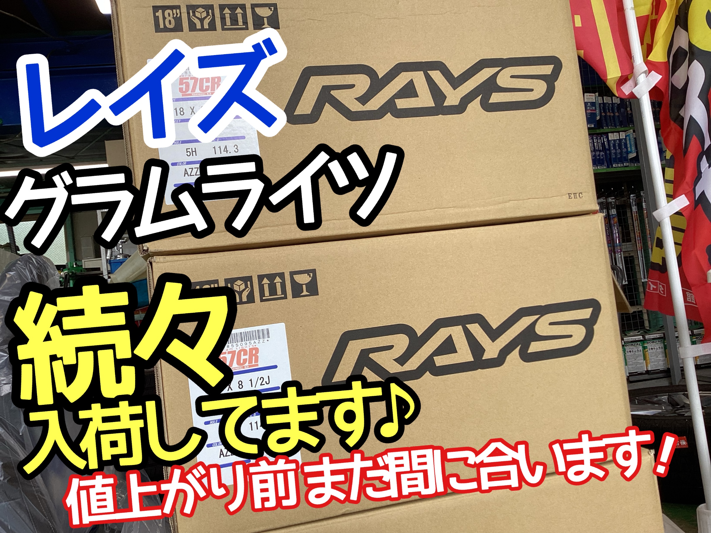 続々入荷中!RAYS(レイズ)のホイールが値上りします(・・;)2024年8月1日ご注文より価格が変わります。皆さん急げぇ(● ˃̶͈̀ロ˂̶͈́)੭ꠥ⁾⁾