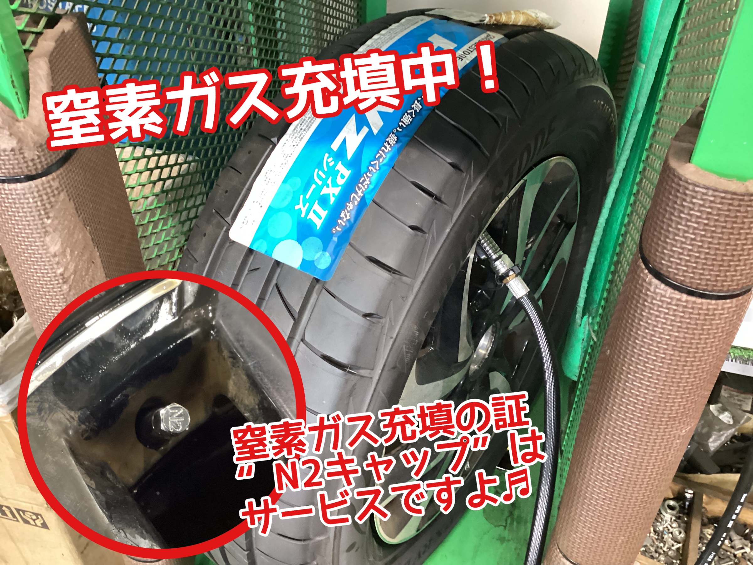 そして、タイヤ長持ちの為に、空気の代わりに