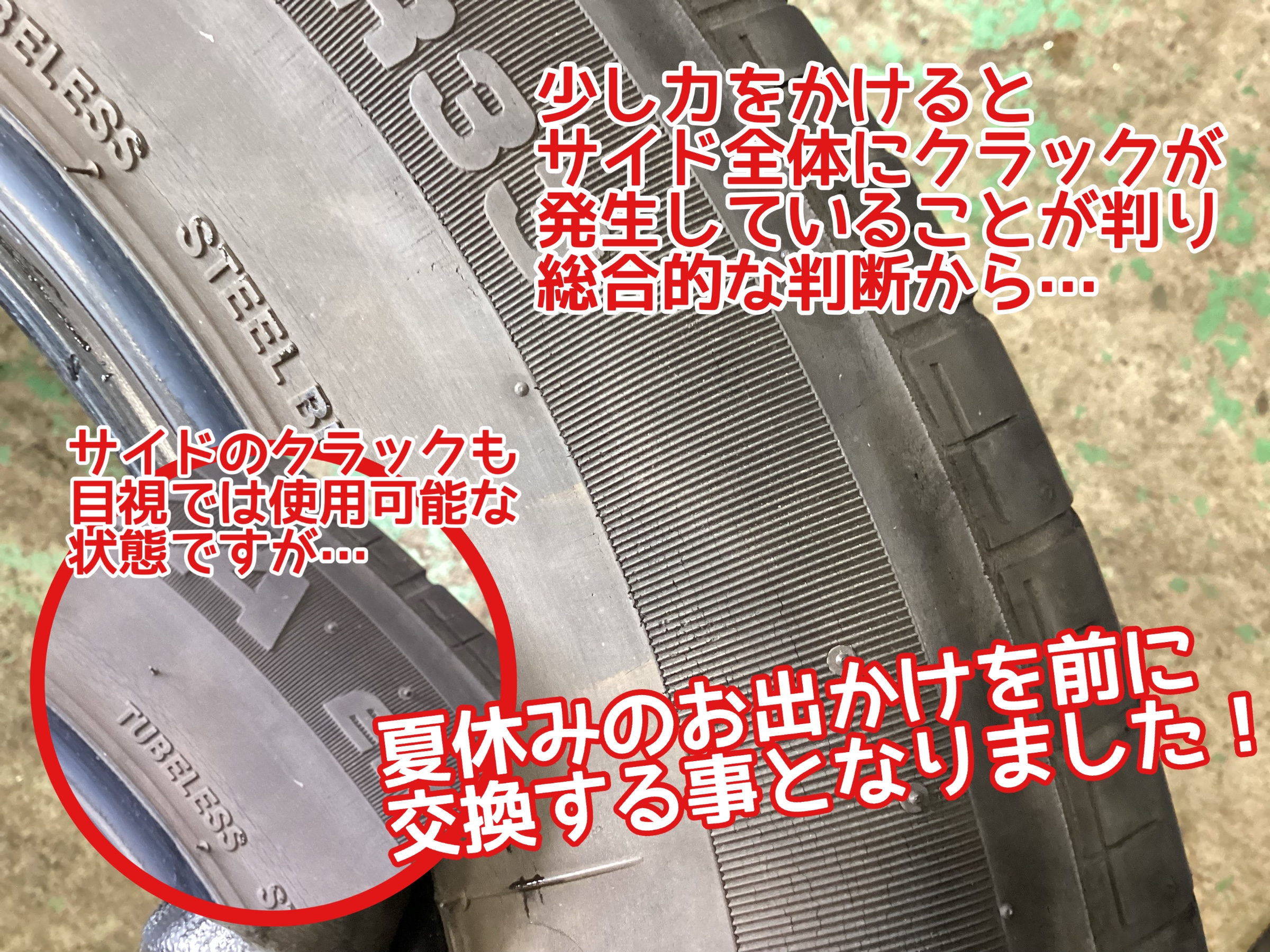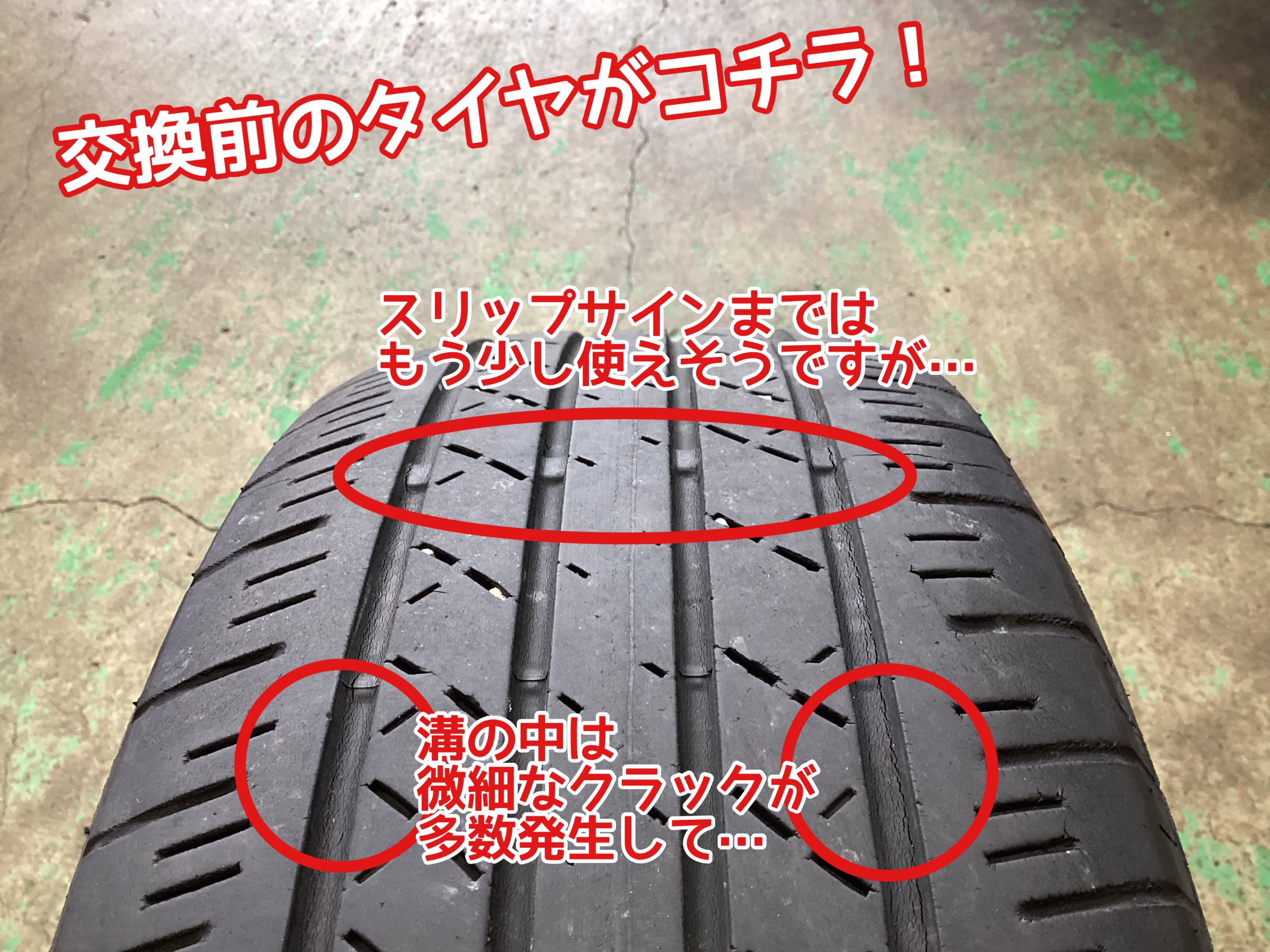 交換する前のタイヤの状態がコチラ!