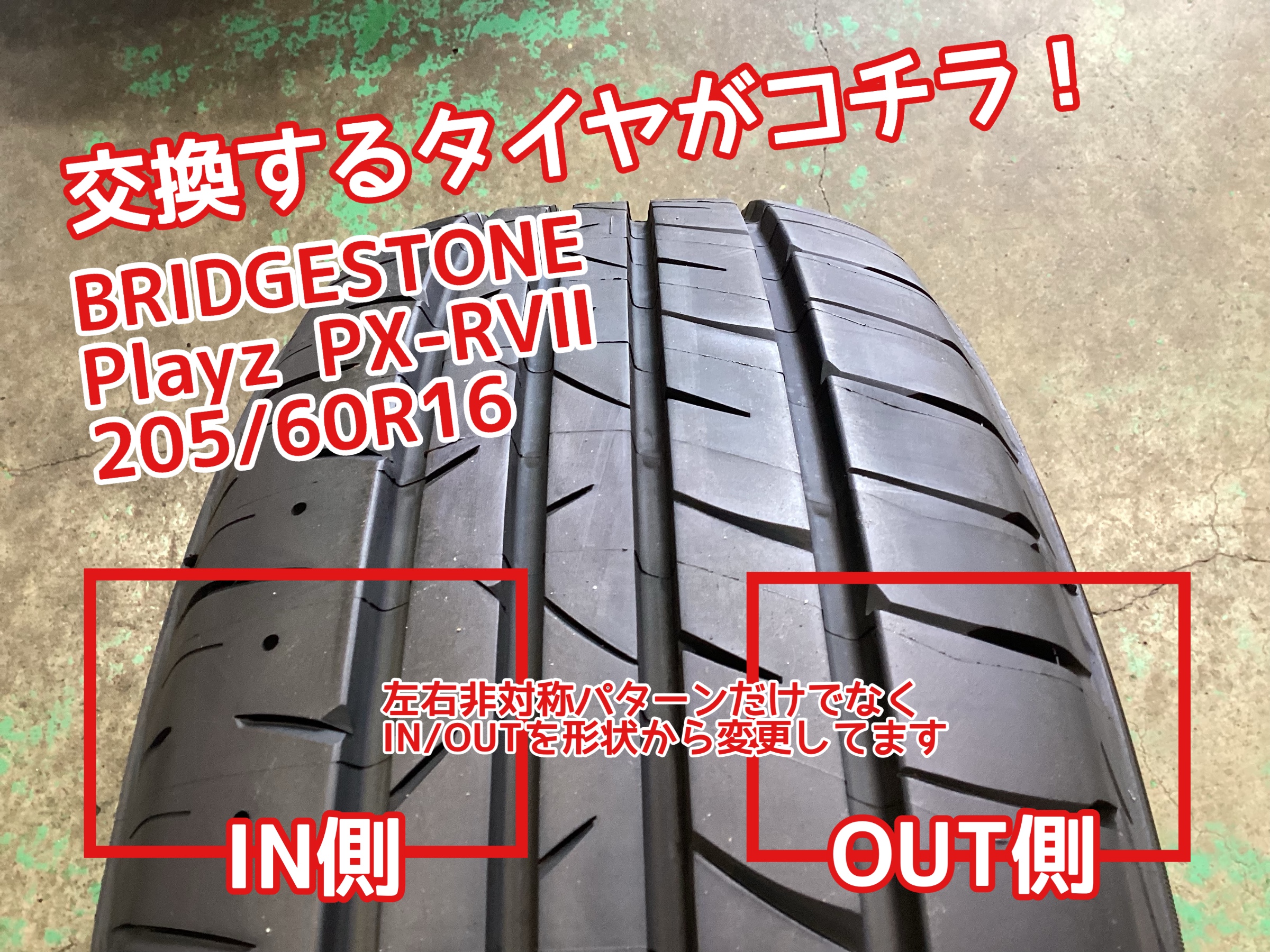 タイヤのIN/OUTで形状を変え(左右非対称形状)