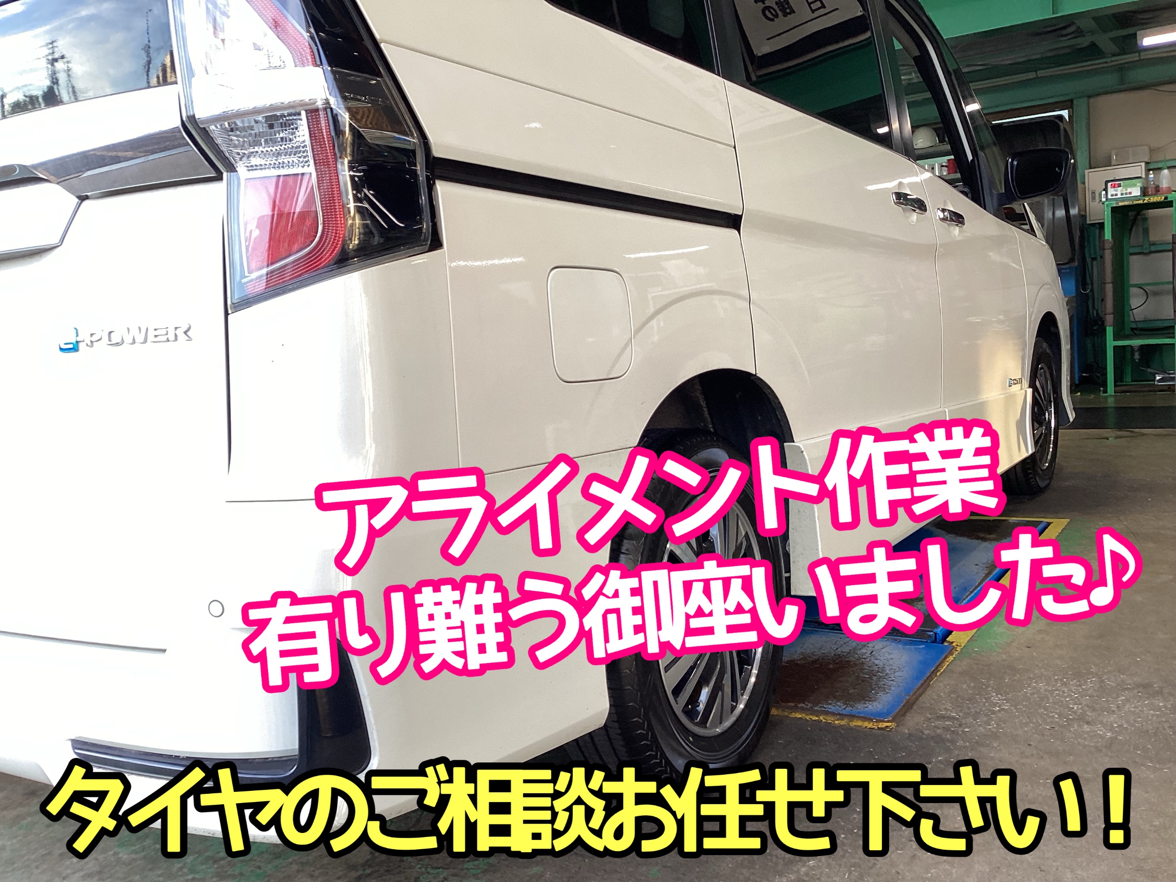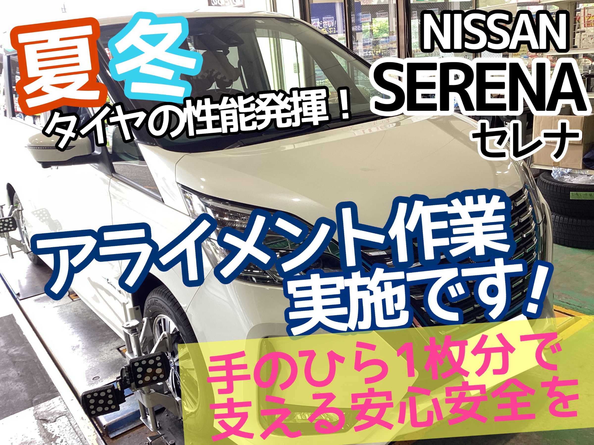 【NISSAN セレナ】アライメント作業です!手のひら1枚分!?タイヤの性能発揮!長持ちにおすすめです!
