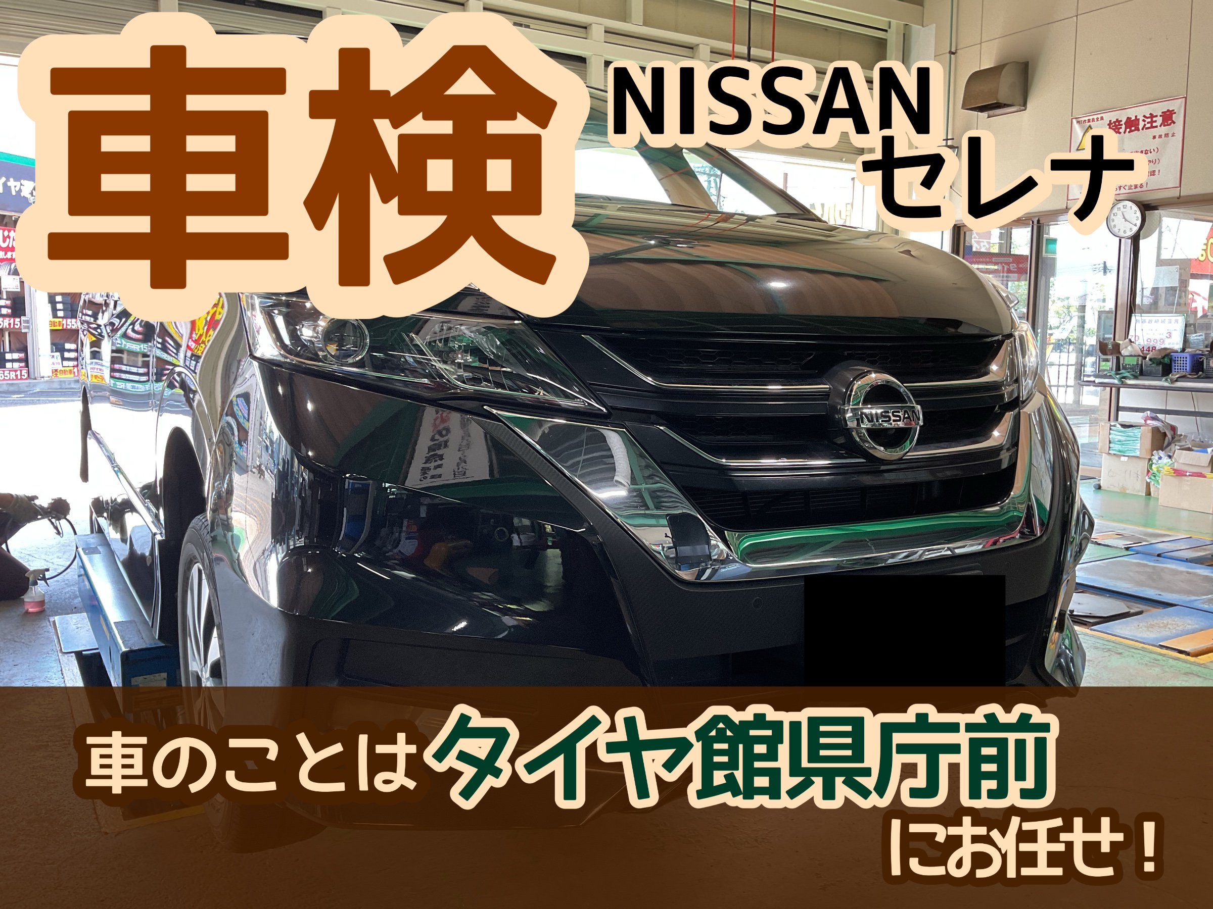 【NISSAN セレナ】車検のご相談はタイヤ館県庁前がオススメです! 代車、お見積り無料です!