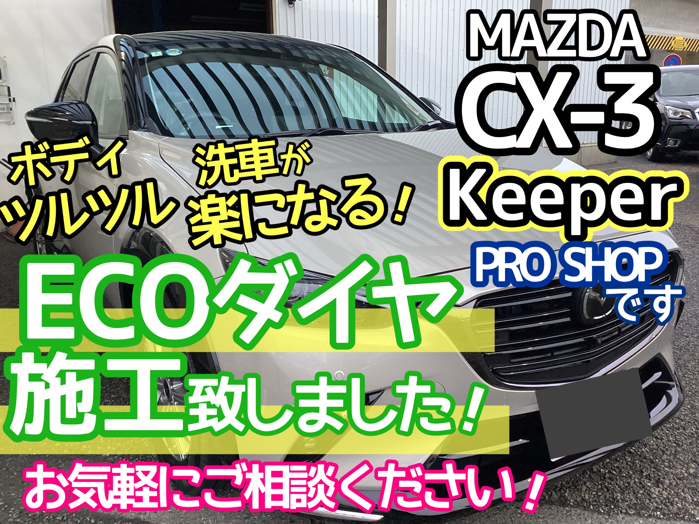 【MAZDA CX-3】ECOプラスダイヤモンドキーパー施工致しました!愛車ピカピカボディコーティングご予約受付しております!!