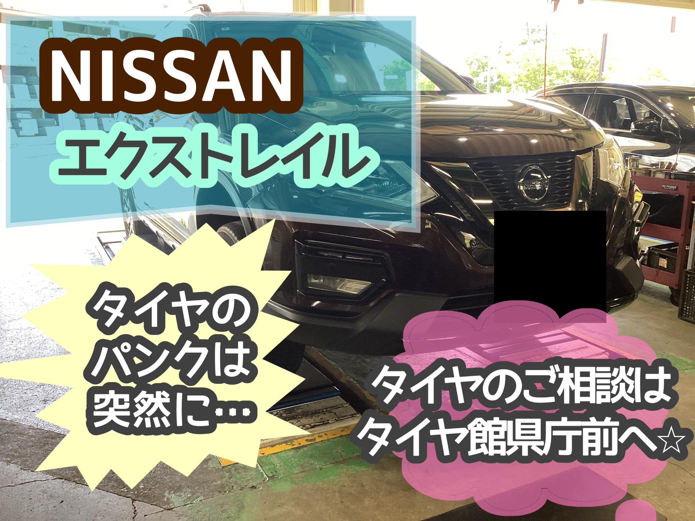 【NISSAN エクストレイル】パンクかな⁈点検・交換はタイヤ館県庁前へお任せ下さい⭐︎