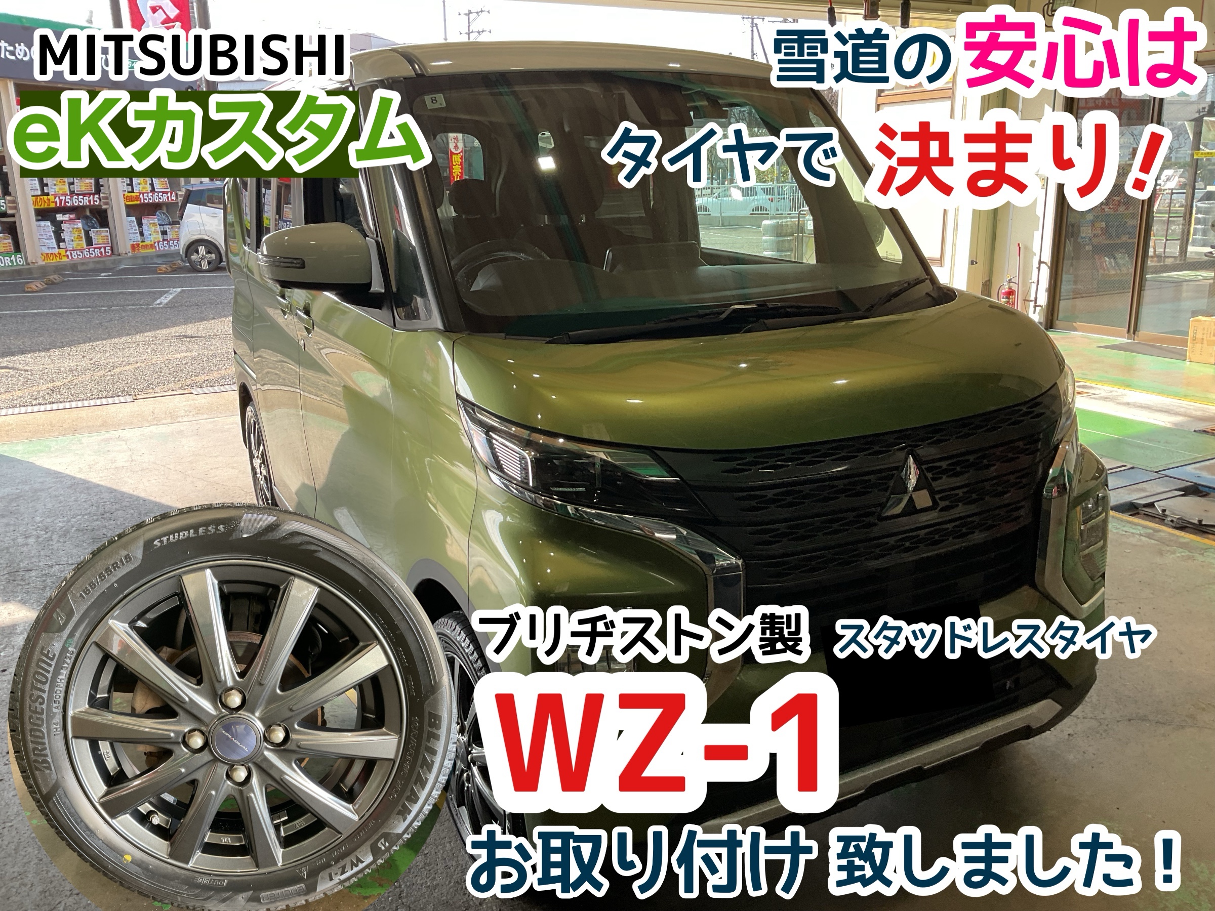 【MITSUBISHI eKカスタム】ブリザックWZ-1お取付!! 雪道の安心はWZ-1で決まり!