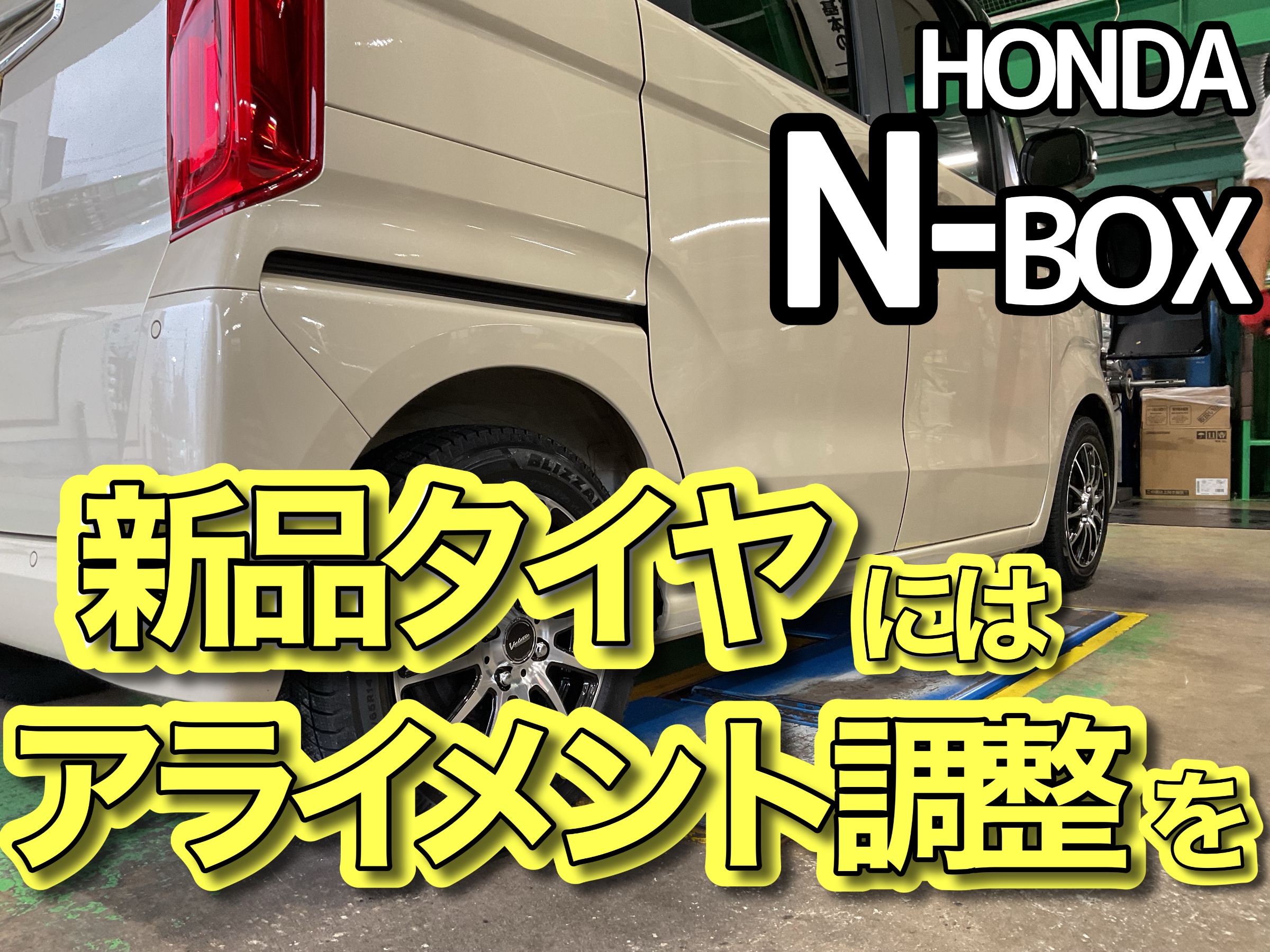 【HONDA N-BOX】アライメント調整作業です!新品タイヤに交換したらアライメントがおすすめです!!