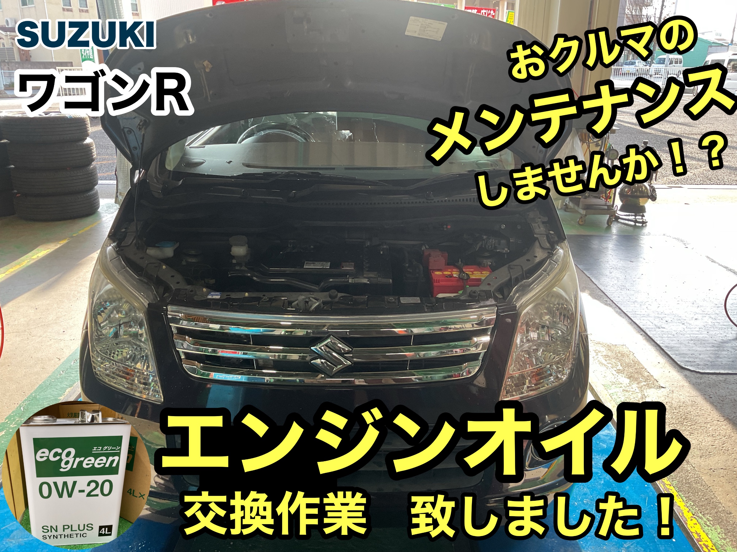 【SUZUKI ワゴンR】エンジンオイル交換 おクルマのメンテナンスしませんか!?