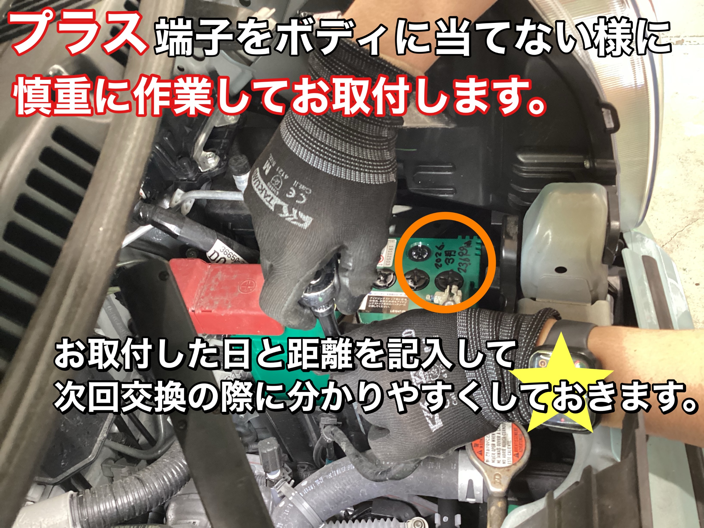 お取付けする際にもバッテリー端子のプラス側がボディなどの