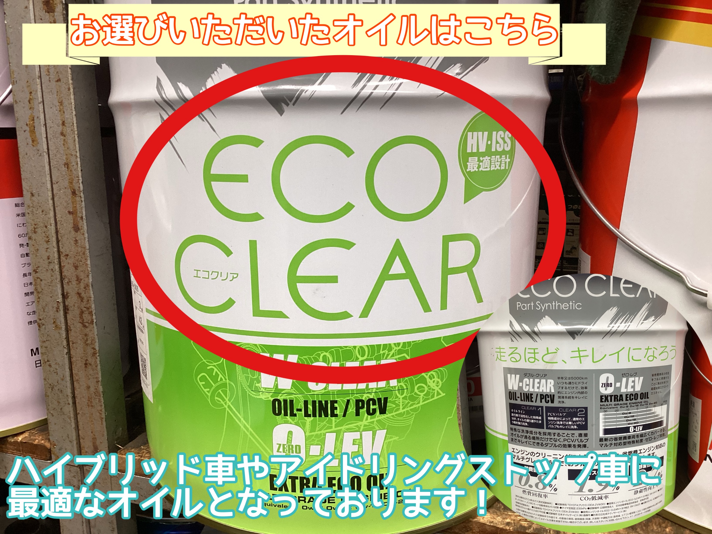 タイヤ館県庁前売れ筋オイル「エコクリア」を