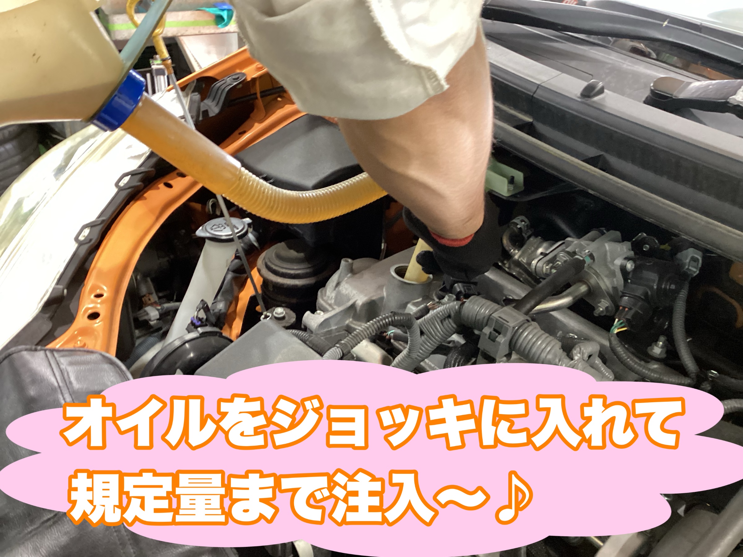 それからオイルをジョッキに入れてお車に