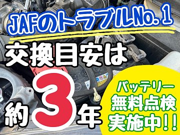 JAFのトラブルNo.1 バッテリー点検いつでも無料です!