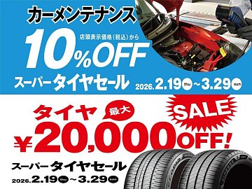 タイヤ最大20,000円引き‼スーパータイヤセール開催中!