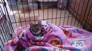 我が家の犬は元気なんですが、猫チャンズは布団にくるまって、小屋から出すと