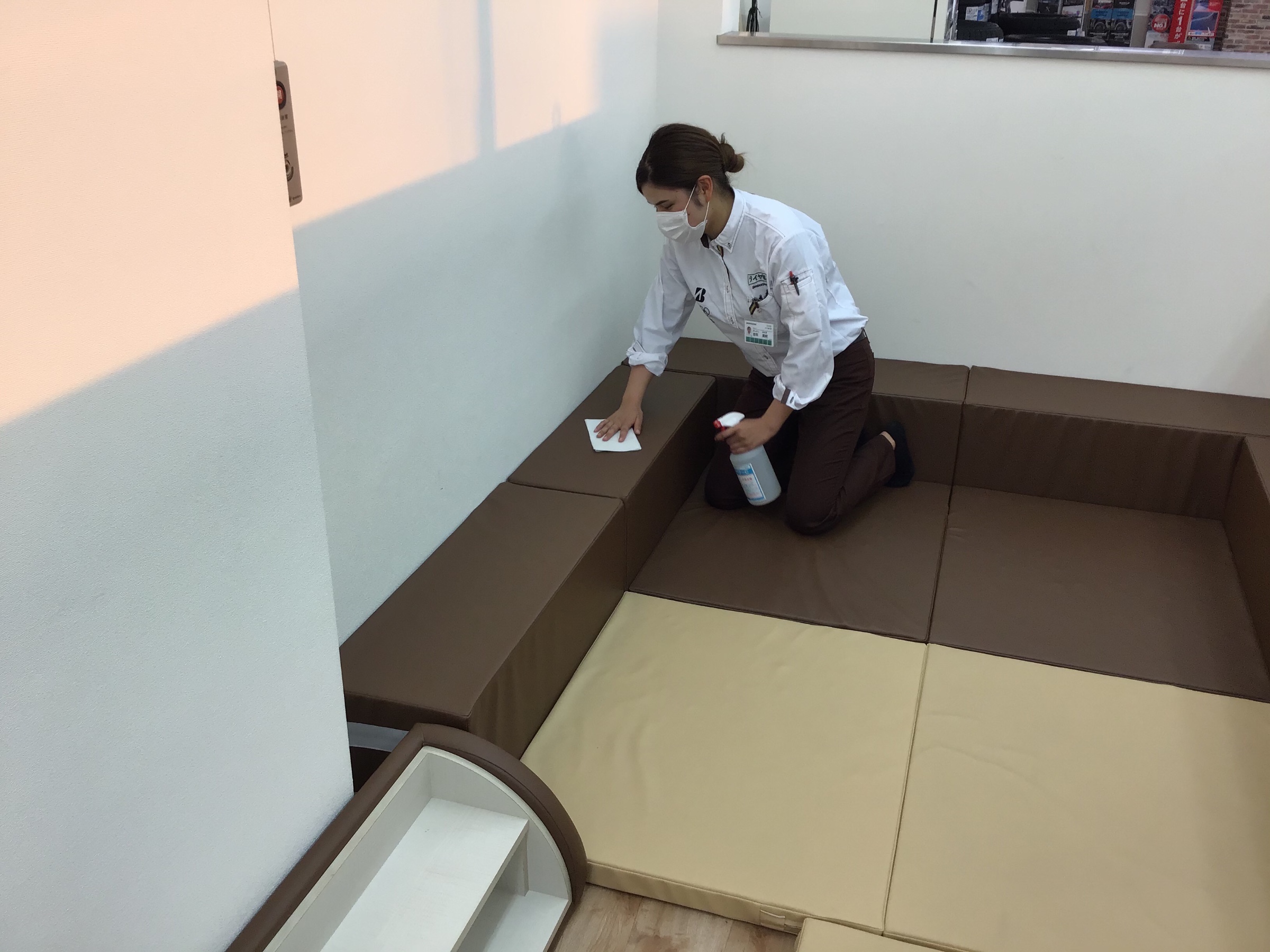 マスク着用はもちろん、店内の換気・消毒液の設置、