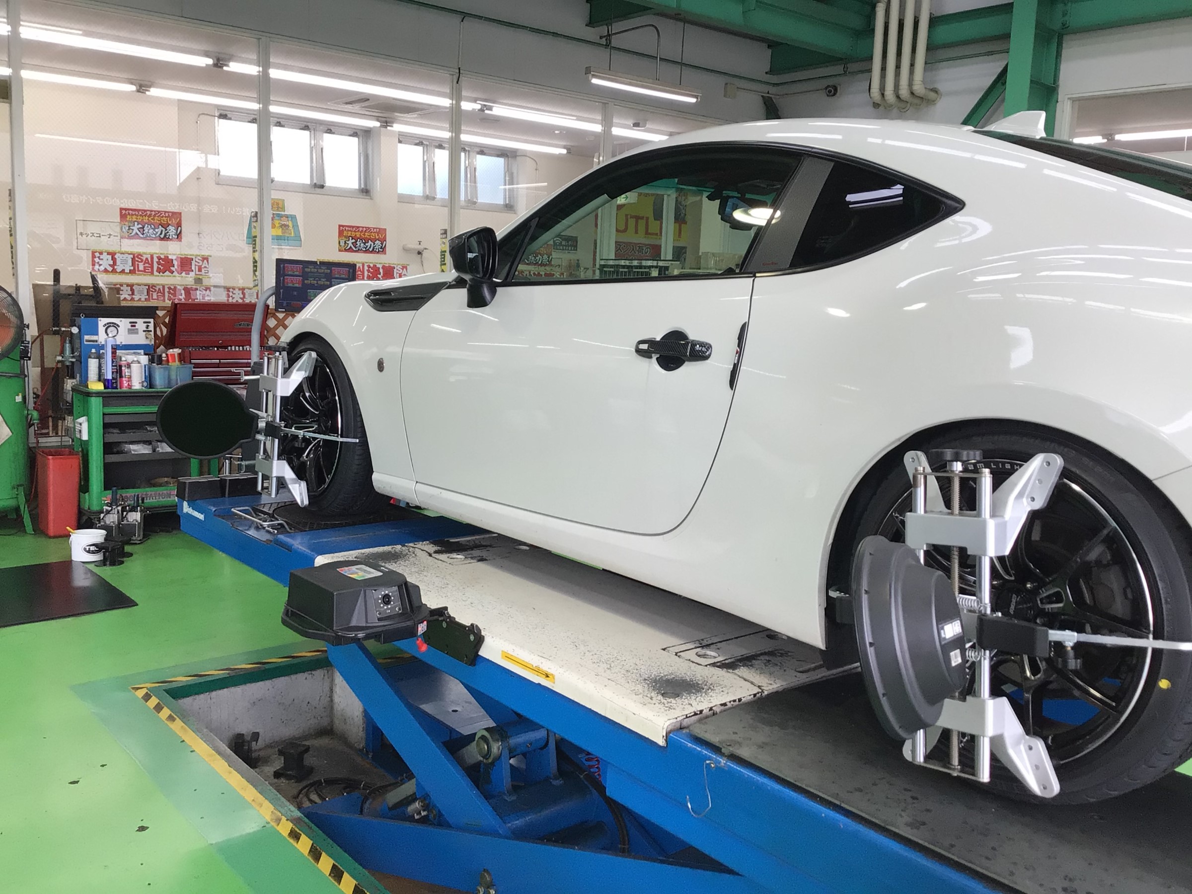 アライメント調整でタイヤの取り付け角度も