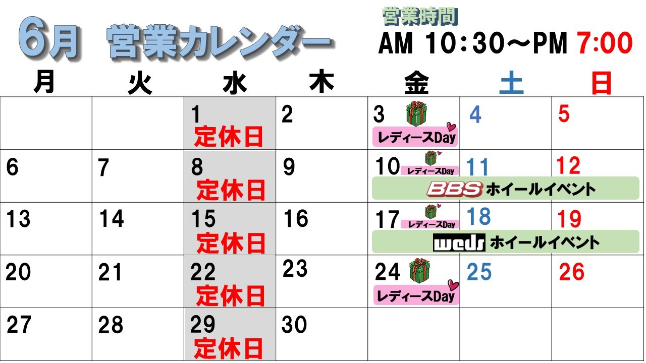 明日水曜日は定休日です!