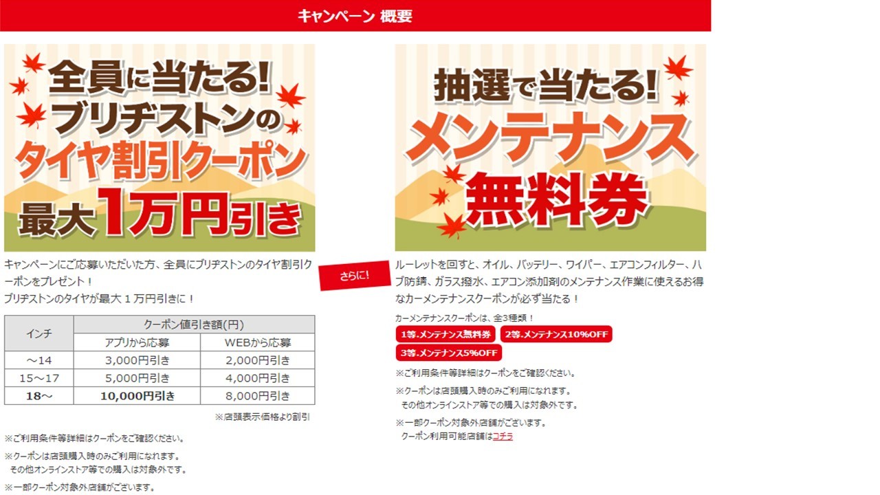 ブリヂストンタイヤ4本ご購入時のみ適用。