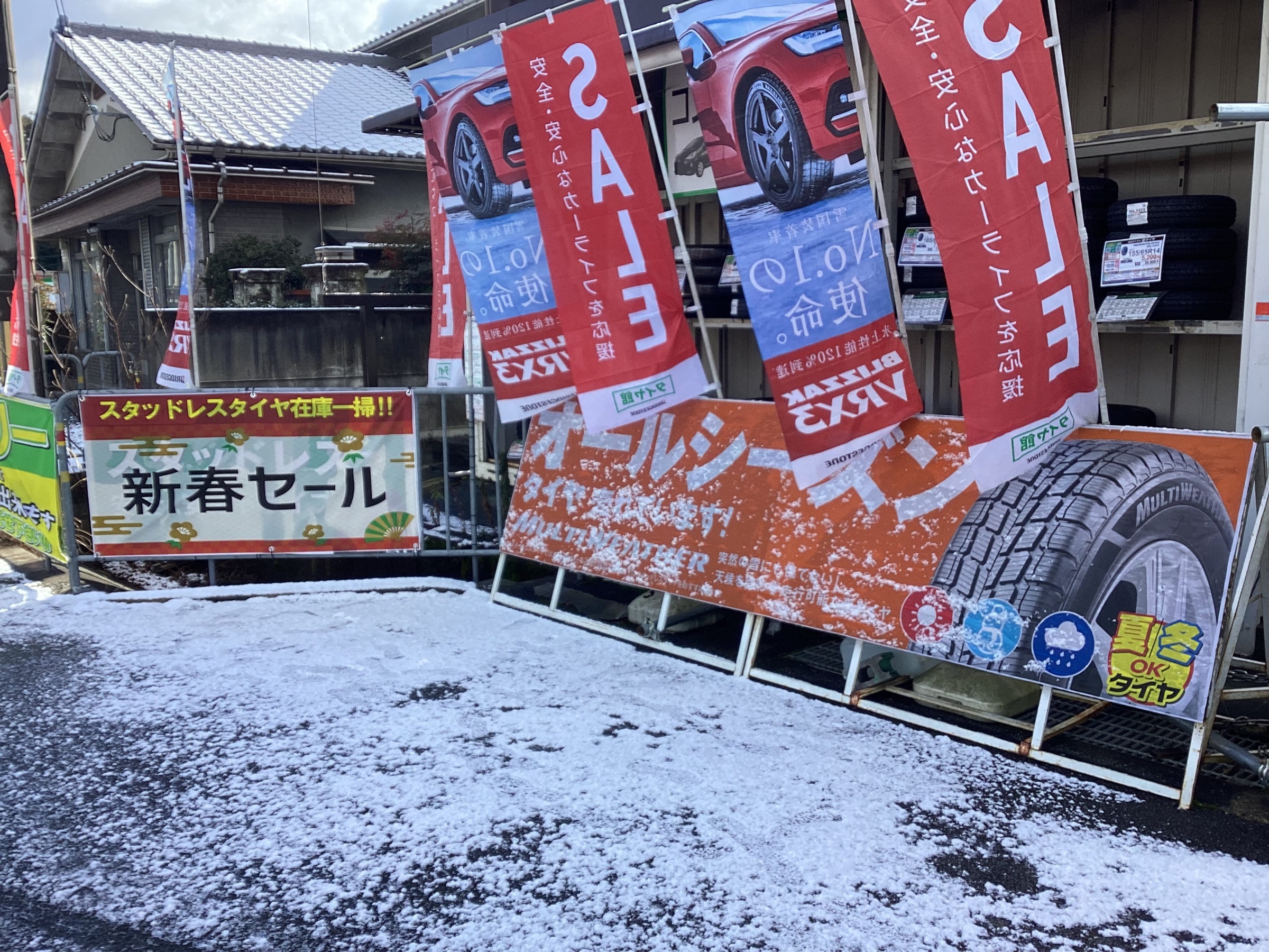 タイヤ館でも、雪が積もっていました‼︎