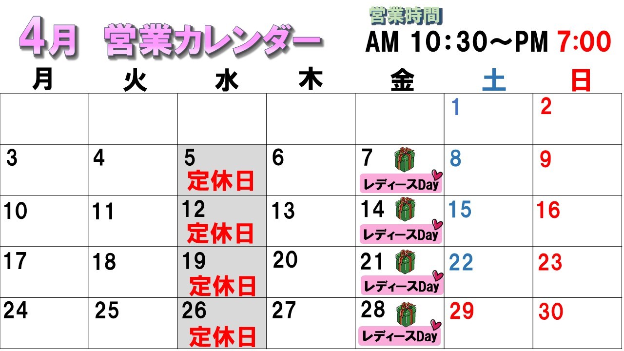 営業時間は水曜日を除く朝10:30~夜の7:00です!