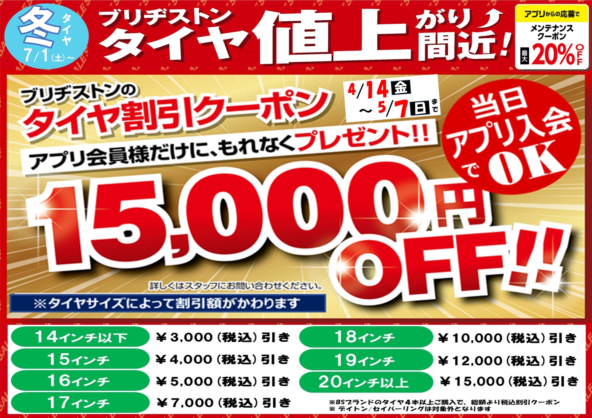 セール価格からさらにタイヤ最大¥15,000割引!